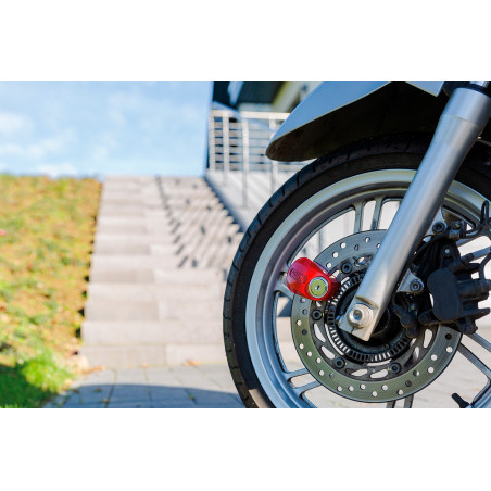 Tip: Zámky na brzdové kotúče sú najkompaktnejšou kategóriou motocyklových zámkov, a preto sa ľahko prepravujú. Pre zvýšenie bezpečnosti pri dlhšom odstavení je vhodné pripojiť motocykel aj k pevnému predmetu.