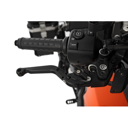 Naša ergonomická brzdová páka sa vyznačuje šiestimi základnými vlastnosťami: plynule nastaviteľnou dĺžkou rukoväte (rozsah nastavenia 35 mm), ktorú možno použiť aj na nastavenie prevádzkových síl, šírkou rukoväte nastaviteľnou v siedmich krokoch a vynikajúcou povrchovou úpravou, ktorá je výsledkom trvalo vysoko kvalitnej mechanickej výroby a presnosti. Pevne integrovaný bezpečnostný skladací mechanizmus znižuje riziko zlomenia páky v prípade pádu alebo pádu a vopred určený bezpečnostný bod zlomu znižuje riziko zachytenia.
