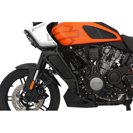 Odporúčame preventívnu ochranu citlivého opláštenia, pretože pri manévrovaní v garáži alebo na verejných parkoviskách hrozí jeho poškodenie. Naša kapotážna tyč spoľahlivo chráni predstavec s kapotážou a oblasť okolo svetlometu, čím znižuje riziko drahého poškodenia. V prípade pádu alebo pádu sú sily pôsobiace na ochrannú tyčovú konštrukciu optimálne rozložené do nosných montážnych bodov, aby sa znížili špičky sily a krútiaceho momentu. Vizuálne sa kryt kapotáže dokonale integruje do línie motocykla a podčiarkuje jeho nápadný vzhľad. Ochranná tyč kapotáže EXTREME je vyrobená z 25 mm presnej rúrkovej ocele. Skladá sa z dvoch rúrkových segmentov, ktoré sú vytvorené na CNC strojoch na ohýbanie rúrok a potom úhľadne zvárané. Montáž je jednoduchá.