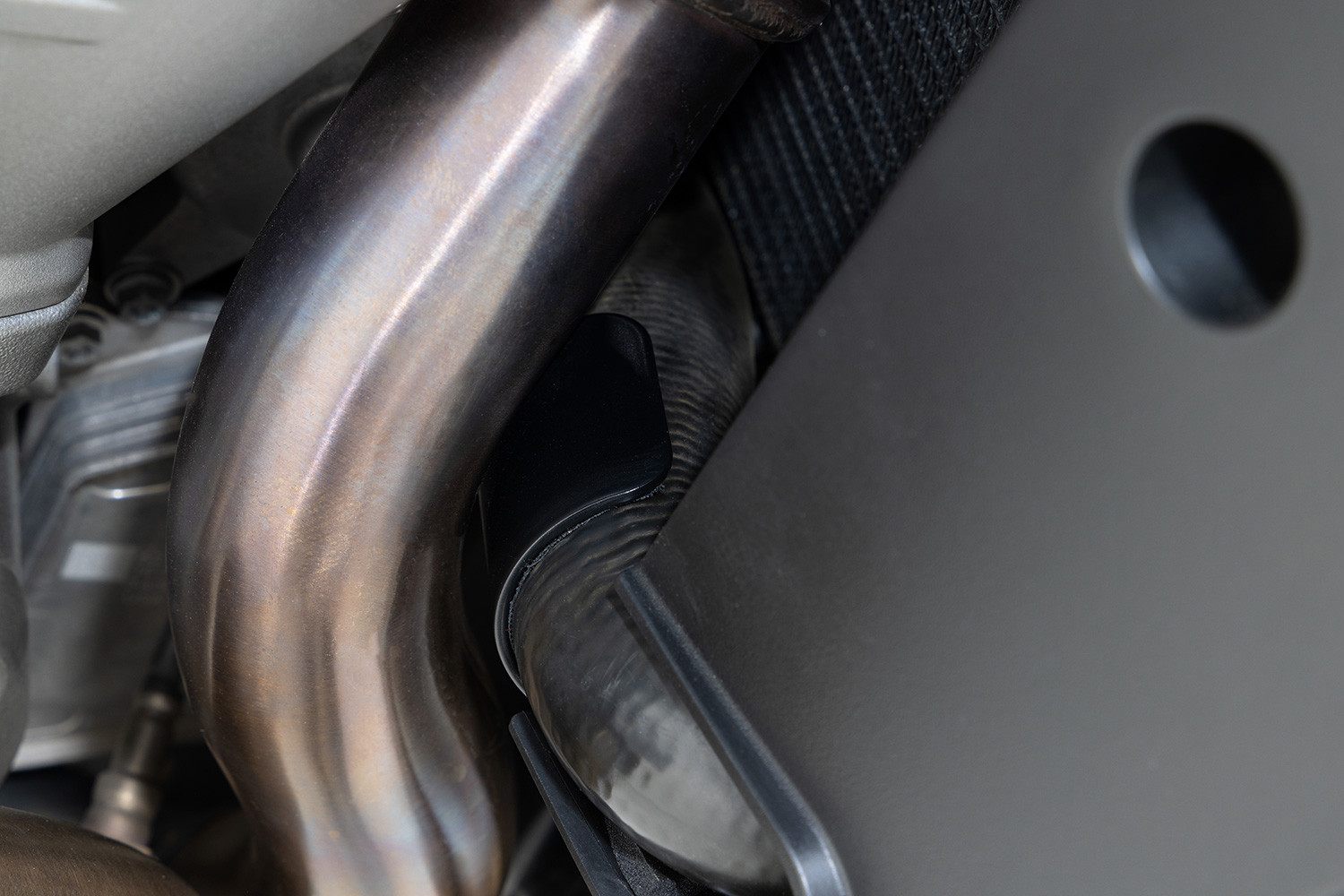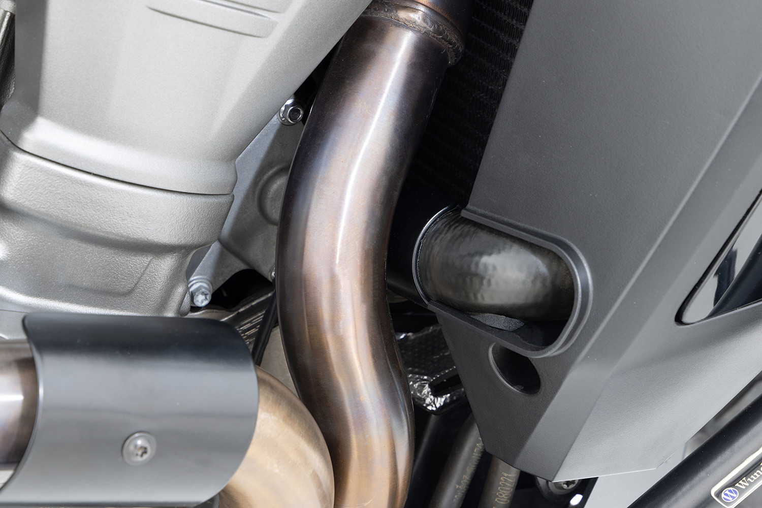 Tepelný štít je vybavený izolačnou páskou na ochranu pred teplom a jednoducho priskrutkovaný k držiaku chladiča. Blatník úplne uzatvára hadicu na strane smerujúcej k rozdeľovaču. Okrem izolačného účinku tepelnej ochrannej pásky má plech aj tepelne odrážajúci účinok.