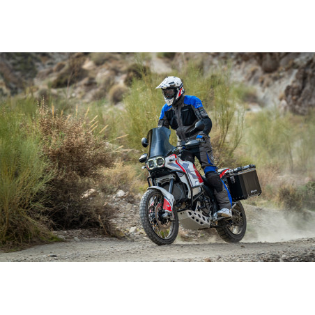 Osvedčené produktové vlastnosti našej kapotáže MARATHON s ich účinnou ochranou proti vetru a poveternostným vplyvom, ich ergonómiou a výrazným komfortom na dlhé vzdialenosti tiež zaisťujú pohodovú jazdu na vašej Ducati DesertX a – mimochodom – vyššiu pasívnu bezpečnosť. Vďaka svojim rozmerom ponúka optimálnu úľavu od tlaku vetra pre hlavu, hornú časť tela a ramená s citeľne zníženými turbulenciami. To znamená, že elegantný disk MARATHON predvádza svoj plný potenciál aj pre atraktívnu Talianku na dlhých i krátkych tratiach a v každom ročnom období. Ponúka maximálnu ochranu a perfektnú ergonómiu pre každú veľkosť tela.