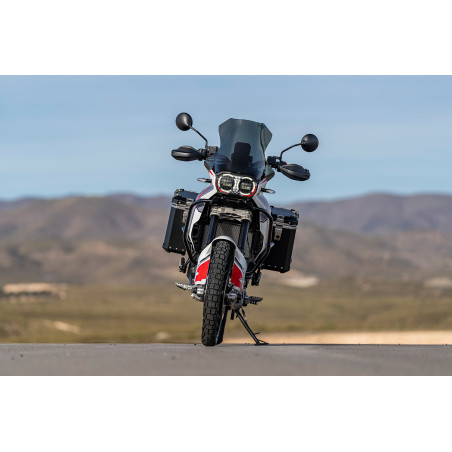 Odporúčame preventívnu ochranu citlivého obkladu, pretože pri manévrovaní v garáži alebo na verejnom parkovisku hrozí jeho poškodenie. Náš držiak kapotáže spoľahlivo chráni kapotáž a oblasť na boku chladiča, čím znižuje riziko drahého poškodenia. V prípade pádu alebo prevrátenia sa pôsobiace sily optimálne rozložia cez ochrannú tyčovú konštrukciu na pružné upevňovacie body, čím sa redukujú silové a momentové špičky. Vizuálne sa ochranná lišta kapotáže dokonale integruje do línie letu DesertX a podčiarkuje jej výrazný vzhľad. Ochranná lišta kapotáže je vyrobená z 25 milimetrovej presnej oceľovej rúrky. Skladá sa z dvoch rúrkových segmentov, ktoré sú vytvarované na CNC ohýbačkách rúr a následne úhľadne zvarené. Zloženie je jednoduché.