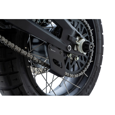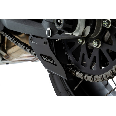 DesertX sa dodáva s bočným chráničom reťaze vyrobeným z plastu. Toto má zabrániť tomu, aby sa konáre alebo iné cudzie predmety neúmyselne „navliekli“ medzi spodnú časť reťaze a ozubené koleso. Toto opatrenie znižuje riziko náhleho zablokovania zadného kolesa a chráni pred mechanickým poškodením spôsobeným pretrhnutím alebo pretrhnutím reťaze.