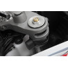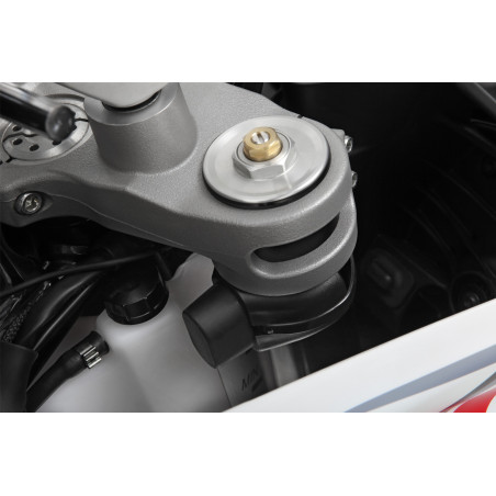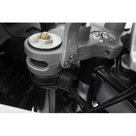 Originálne dorazy riadenia, rám a nádrž sú spoľahlivo chránené našimi obmedzovačmi, ktoré sú pri maximálnom uhle natočenia volantu podopreté na vhodnom, stabilnom mieste na ráme a znižujú nebezpečenstvo poškodenia! V prípade prevrátenia alebo pádu obmedzujú a tlmia uhol riadenia svojimi veľkými gumovými blokmi, a to ešte predtým, ako sa plnou silou dosiahnu štandardné dorazy riadenia. Materiálové vlastnosti obmedzovačov sú zvolené tak, aby tlmenie nárazu bolo spočiatku mäkké a progresívne so zväčšujúcim sa uhlom riadenia. Absorbujú energiu nárazu, chránia pôvodné dorazy riadenia a znižujú riziko, že sa štandardné dorazy ohýbajú alebo odlomia.