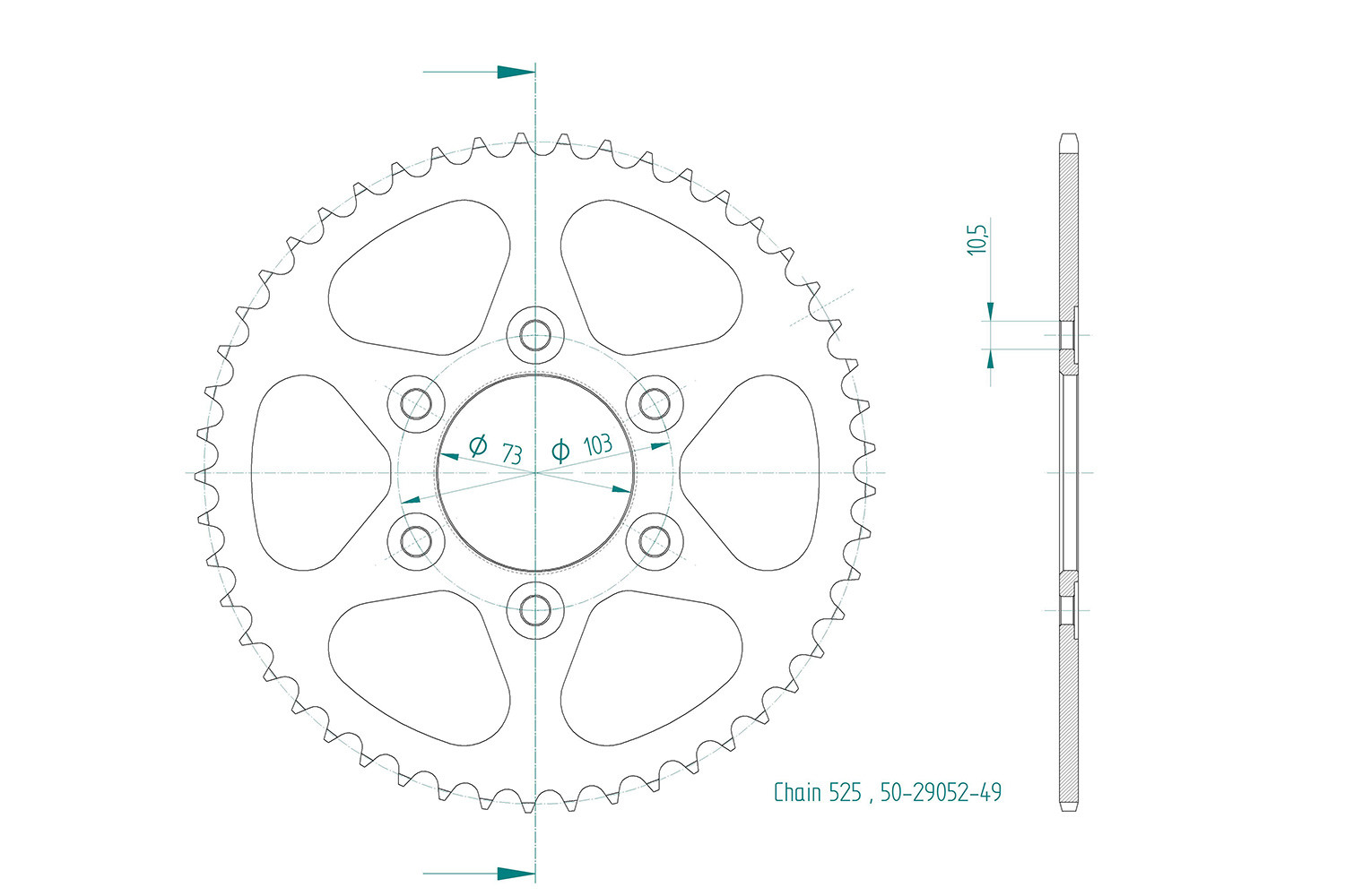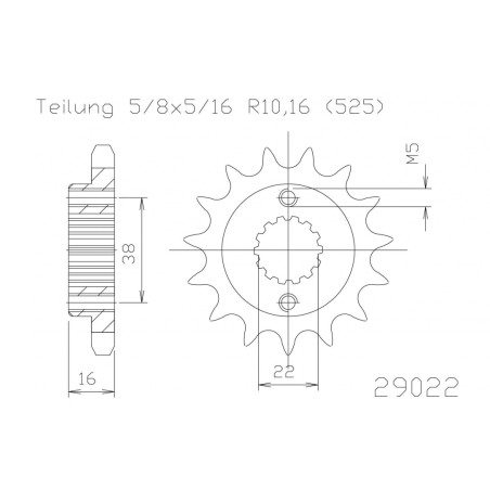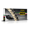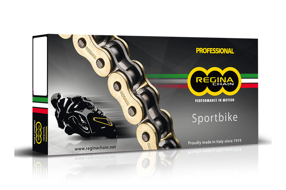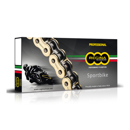 Kvalitná reťazová sada pozostávajúca z reťaze Regina 525-ZRPO s nitovým zámkom vo vhodnej dĺžke a počte článkov, ako aj ozubeného kolesa a ozubeného kolesa od ESJOT v originálnom preklade.