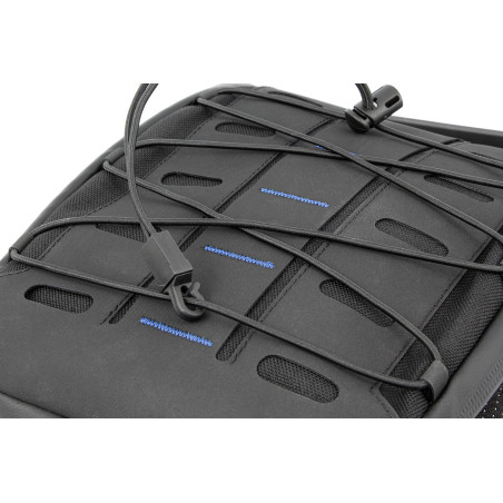 Horná časť veka má všestranný montážny systém tvorený pravidelne usporiadanými oválnymi otvormi, ktorý je porovnateľný s vojenským MOLLE systémom. Pomocou pútok sa sem dajú jednoducho integrovať ďalšie vrecká na príslušenstvo. Nastaviteľná sieťka z elastického pásika usporiadaného do cik-cak vzoru sa používa na rýchle uchytenie rukavíc atď. Pre ľahké prenášanie sme poskytli pohodlnú rukoväť.