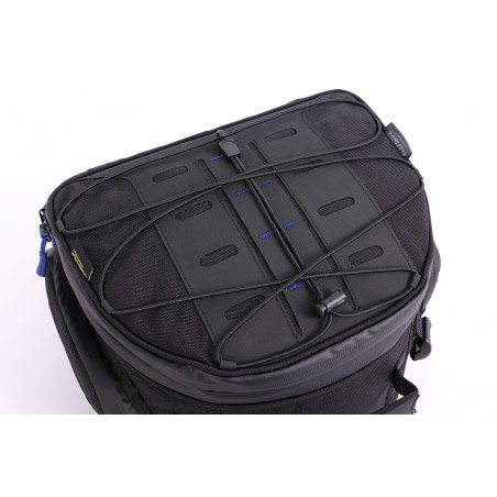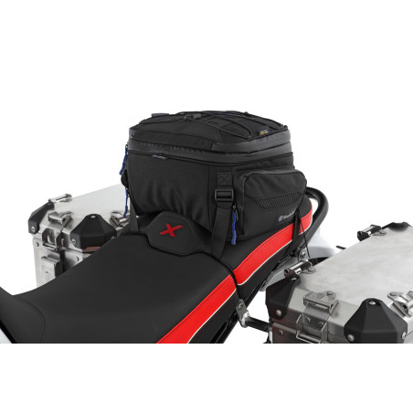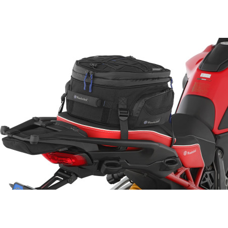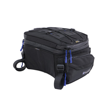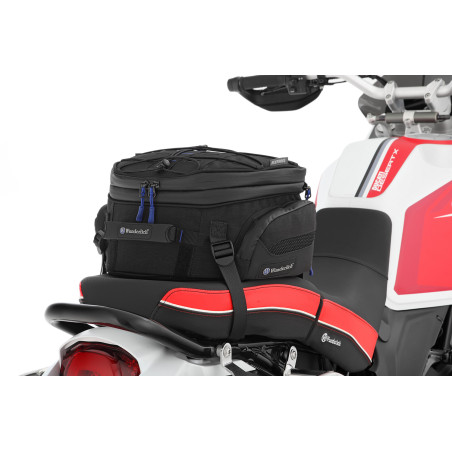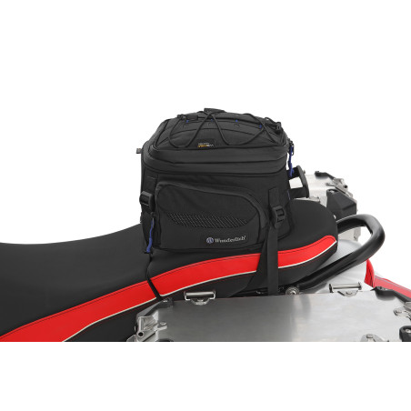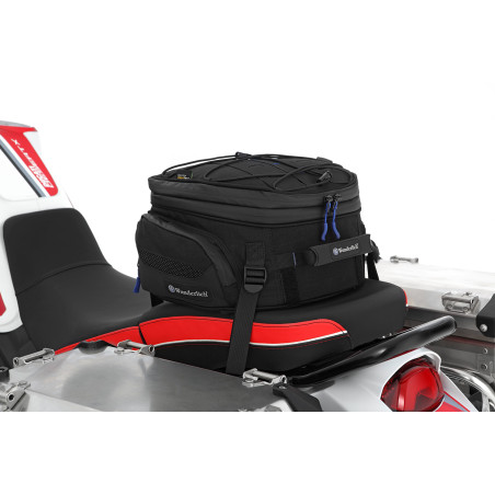 Naša multifunkčná a kompaktná taška sa dá ľahko a jednoducho pripevniť buď na nosič batožiny, alebo na sedadlo spolujazdca. Je univerzálne použiteľný na takmer všetky motocykle. Je ideálny, keď potrebujete rýchlo ďalší úložný priestor. Nový, efektívny, funkčný dizajn našej tašky na sedadlo a nosič batožiny spoznáte podľa jemných modrých aplikácií.