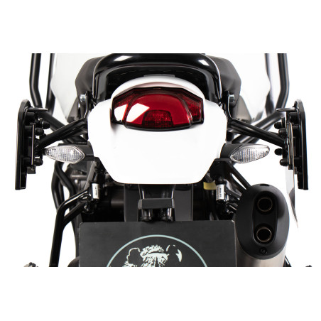 Všetky bočné tašky Hepco&Becker, kožené tašky alebo puzdrá s úchytmi C-Bow je možné pripevniť na motocykel pomocou nosičov C-Bow špecifických pre daný model. Nenápadný a elegantný dizajn dokonale zapadá do celkovej línie vozidla. Samozrejmosťou je dostatočná bezpečnostná vzdialenosť medzi taškami a horúcim tlmičom výfuku. Vďaka technológii C-Bow sa vhodné tašky rýchlo a jednoducho pripevnia k nosiču C-Bow jediným kliknutím a bezpečne a bezpečne uzamknú pomocou kľúča. Brašne sú pevne pripevnené k motocyklu a zostávajú na svojom mieste aj pri naložení. Indikátory zvyčajne zostanú v pôvodnej polohe.