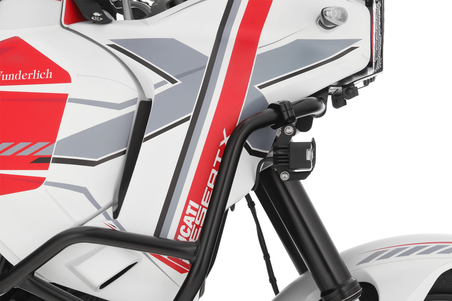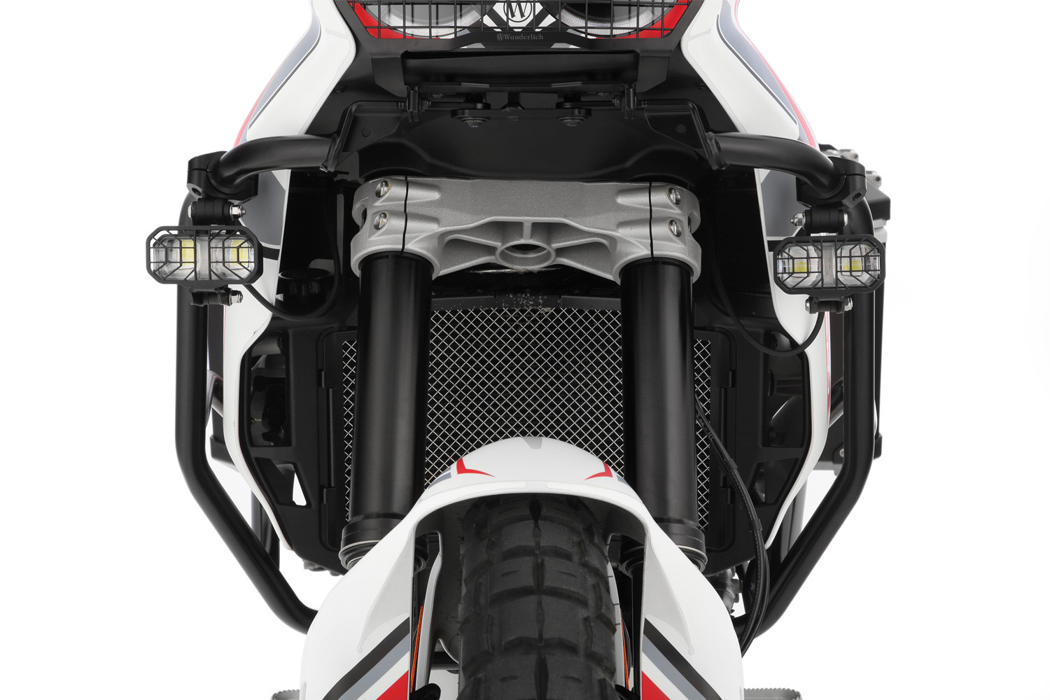 Vďaka dvom samostatným LED diódam na svetlomete a šošovkám Wunderlich testovaným na E s logom našej značky máte výrazný dizajn osvetlenia, ktorý je možné rozpoznať už z diaľky. Dve LED diódy navyše zaisťujú redundanciu: Ak jedna z nich nečakane zlyhá, jedna je stále k dispozícii. Prídavné svetlomety štandardne vybavujeme aj sklopnými, účinnými ochrannými mriežkami – radšej bezpečne ako ľutovať!