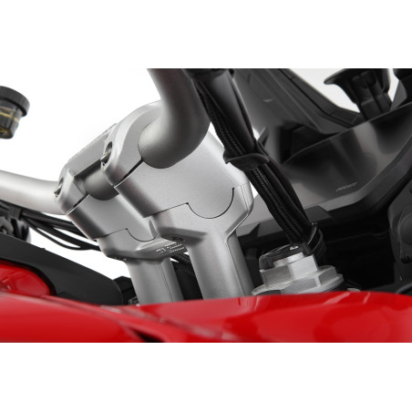 So stúpačkou riadidiel ERGO+, špeciálne navrhnutou našimi vývojármi, sú riadidlá nielen o 39 mm vyššie, ale sú umiestnené aj o 21 mm bližšie k jazdcovi. Ergonomické účinky sú značné, pretože pôsobia uvoľňujúco na celé chrbtové svalstvo a ruky a zároveň odľahčujú chrbticu, panvu a kostrč. To výrazne zlepšuje vhodnosť na turistiku a pohodlie. A uvoľnená jazda zabezpečuje aj zvýšenú pasívnu bezpečnosť, rovnako ako lepší prehľad o dianí na ceste, ktorý vyplýva zo vzpriamenejšej polohy sedenia. Vďaka vylepšenej možnosti naklápania riadidiel je možné polohu sedenia ďalej individuálne optimalizovať.