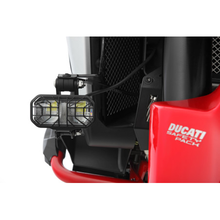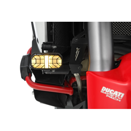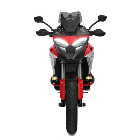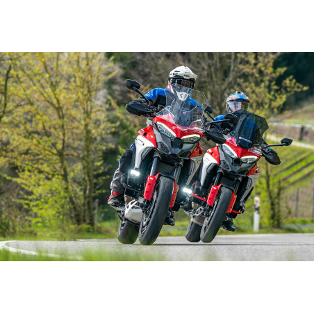 Ovláda sa pohodlne z riadidiel pomocou podsvieteného spínača. Farba svetla zodpovedá farbe hlavných svetlometov modelu Multistrada V4. Inštalácia je plug & play.