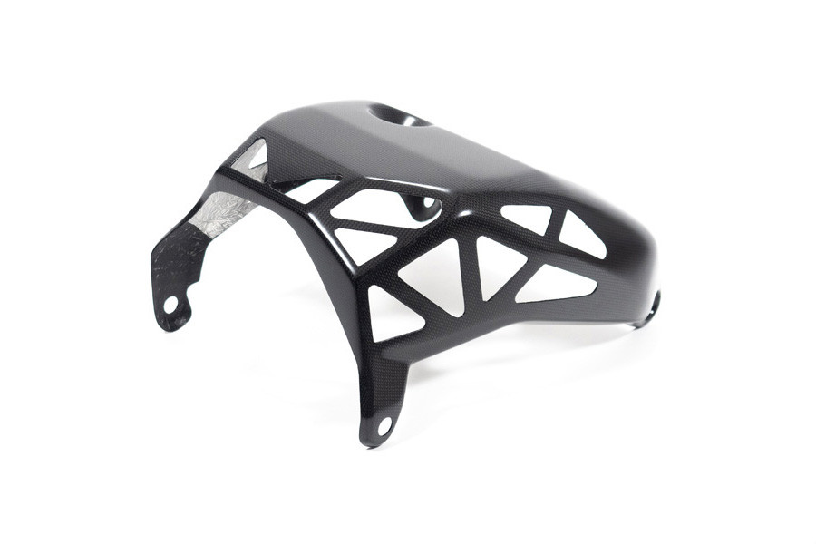 Priestorový materiál ukazuje svoj plný potenciál s až 70% úsporou hmotnosti v porovnaní so sériovým dielom a svojou tuhosťou špecifickou pre hmotnosť. Forma sleduje funkciu a optimálne sa integruje do dizajnu motocykla. Zohľadňujú sa línie príslušného stroja, ako aj materiál a povrchová štruktúra susedných sériových komponentov. Tento karbónový komponent podčiarkuje high-tech príťažlivosť vašej Ducati s jedinečným vzhľadom skutočného karbónu.