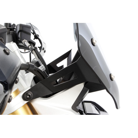 Pevná okenná výstuž je uchytená medzi originálnym držiakom okna a oknom a je priskrutkovaná aj na bočnú stranu držiaka svetlometu. Týmto spôsobom je pôvodný držiak zosilnený a podopretý, aby sa minimalizoval vysoký tlak vetra, ako aj vibrácie kotúča a riziko vzniku trhlín spôsobených vibráciami.
