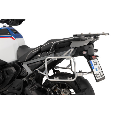 Prečo je tento nosič batožiny pre úplne nové BMW R 1300 GS Adventure taký univerzálny? Dá sa ním umiestniť originálne hliníkové kufre BMW s výrezom pre zadný tlmič alebo EXTREME slimline alebo bežné kufre z obľúbenej rovnomennej série batožiny Wunderlich.
