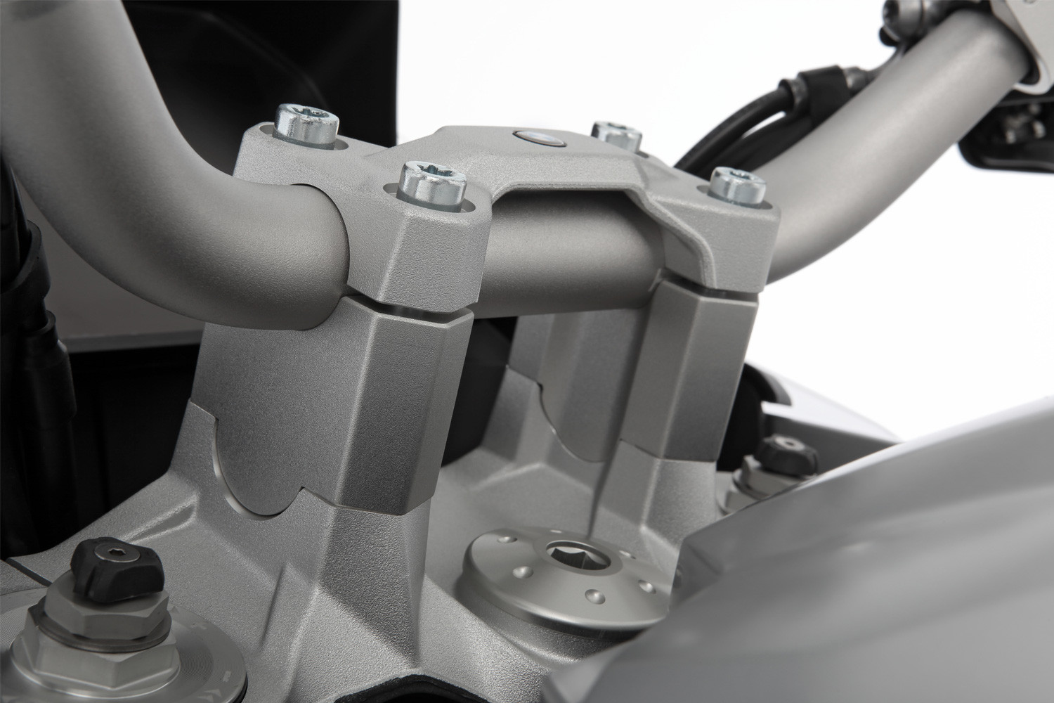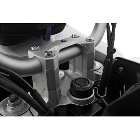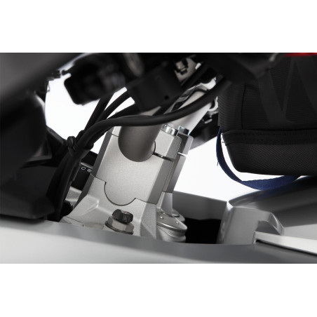 Nášimi vývojármi špeciálne navrhnutá stúpačka riadidiel zdvíha riadidlá o 40 mm. Prevýšenie sa ukazuje ako ideálne pre dynamické enduro alebo terénne použitie, ktoré sa jazdí v stoji. Ergonomické efekty sú výrazné najmä pre vysokých jazdcov, pretože pôsobia uvoľňujúco na celé chrbtové svalstvo a ruky a zároveň odľahčujú chrbticu, panvu a kostrč. To výrazne zlepšuje vhodnosť na turistiku a pohodlie. A uvoľnená jazda poskytuje dodatočnú úroveň pasívnej bezpečnosti, rovnako ako lepší prehľad o dopravnej situácii, ktorý je výsledkom vzpriamenejšej polohy sedenia.