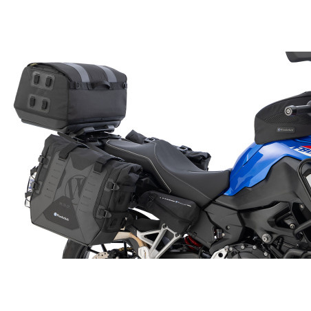 20 mm presná oceľová rúrka a 3-bodové upevnenie zaisťujú spoľahlivú stabilitu – aj pri plnom zaťažení. Pri navrhovaní nosníka sa kládol dôraz nielen na tuhosť komponentov, ale aj na optimalizáciu vlastnej hmotnosti. Vďaka svietidlu X-Rack X-BAG tesne priliehajú k motocyklu a majú priaznivé ťažisko. To zdokonaľuje ovládateľnosť, optimalizuje bezpečnosť jazdy a zužuje siluetu – nepopierateľná výhoda v mestách, na trajektoch alebo v garáži doma – v konečnom dôsledku všade tam, kde je potrebné tesné manévrovanie. Okrem toho sa tým minimalizuje oblasť predného (hnacieho) vetra pre softbagy.