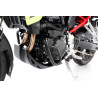 Jeho kompaktná geometria komponentov spoľahlivo chráni nielen motor, ale nepriamo aj vodné čerpadlo, spojku a alternátor, ako aj kryty ich skríň bez ovplyvnenia svetlej výšky a uhla náklonu. Dvojdielna ochranná lišta motora tesne prilieha a vďaka svojej špecifickej štruktúre získava dodatočnú stabilitu a tuhosť – to všetko pri optimalizácii hmotnosti komponentov. Držiaky pre pravú a ľavú stranu sú pevne priskrutkované k dvom vybraným existujúcim montážnym bodom. V prípade pádu alebo prevrátenia sa pôsobiace sily optimálne rozložia cez ochrannú tyčovú konštrukciu na nosné podperné body, takže sa zabráni silám a momentovým špičkám a účinne sa zníži napätie materiálu. V kombinácii s chráničom nádrže ULTIMATE (#41586-002) tvorí komplexný, osvedčený koncept všestrannej ochrany, zvyšuje pasívnu bezpečnosť a prispieva tak k radosti z jazdy.
