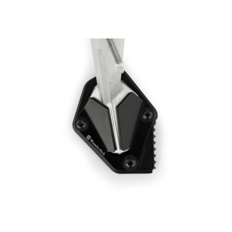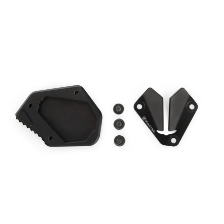 Životné poistenie pre vaše BMW: Vzhľadom na malú styčnú plochu pôvodného bočného stojana hrozí pomalé, často nepozorované potopenie na horúcich asfaltových povrchoch aj na len mierne zmäkčených povrchoch. Presne vyfrézovaný podperný nástavec, ktorý sa jednoducho naskrutkuje na bočný stojan, efektívne odstraňuje túto konštrukčnú vadu. A aby sa bočný stojan dal ľahko vyklopiť pätou topánky, zakomponovali sme vonkajšie zuby.