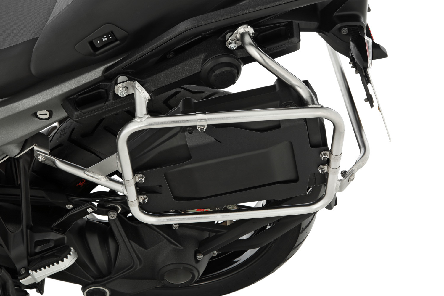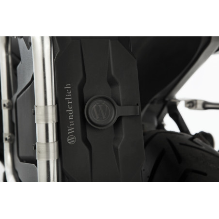 Naša na mieru vyrobená skrinka na náradie ponúka ďalší úložný priestor pre všetky druhy užitočných drobností a dokonale sa integruje do výklenku medzi ľavým držiakom kufra EXTREME a zadným kolesom. Funkčný, robustný box je vybavený štyrmi pevnými závitovými vložkami a je bezpečne namontovaný na nosiči Wunderlich pomocou držiaka a zodpovedajúcich svoriek. Aby bola vždy zabezpečená dobrá dostupnosť, dá sa otvárať a zatvárať zozadu – dokonca aj s namontovanými puzdrami. Veko je zabezpečené proti strate. Box je vyrobený z kvalitného plastu, je vodeodolný a mimoriadne robustný.