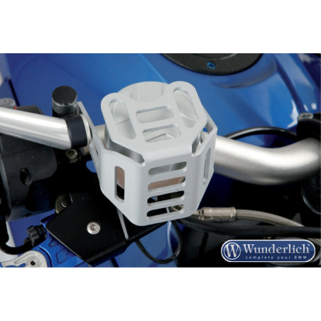 Výsledkom sú drahé opravy a často prerušenie sviatkov. O tri rozbité brzdové nádrže neskôr sme vyvinuli túto ochranu, ktorá je podopretá priamo na skrutke riadidiel pomocou konštrukčne zložitého držiaka a je dodatočne pripevnená k držiaku chrániča (chrániče nie je potrebné montovať). Preto malo zmysel použiť hrubostenný hliník, ktorý dokáže prenášať údery na sofistikované držiaky bez toho, aby sa sám zničil.