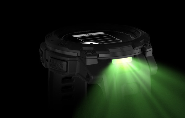 V púzdre hodiniek sa nachádza výkonná LED baterka s nastaviteľným jasom v niekoľkých úrovniach (aj s režimom záblesku) a bielym alebo zeleným svetlom.