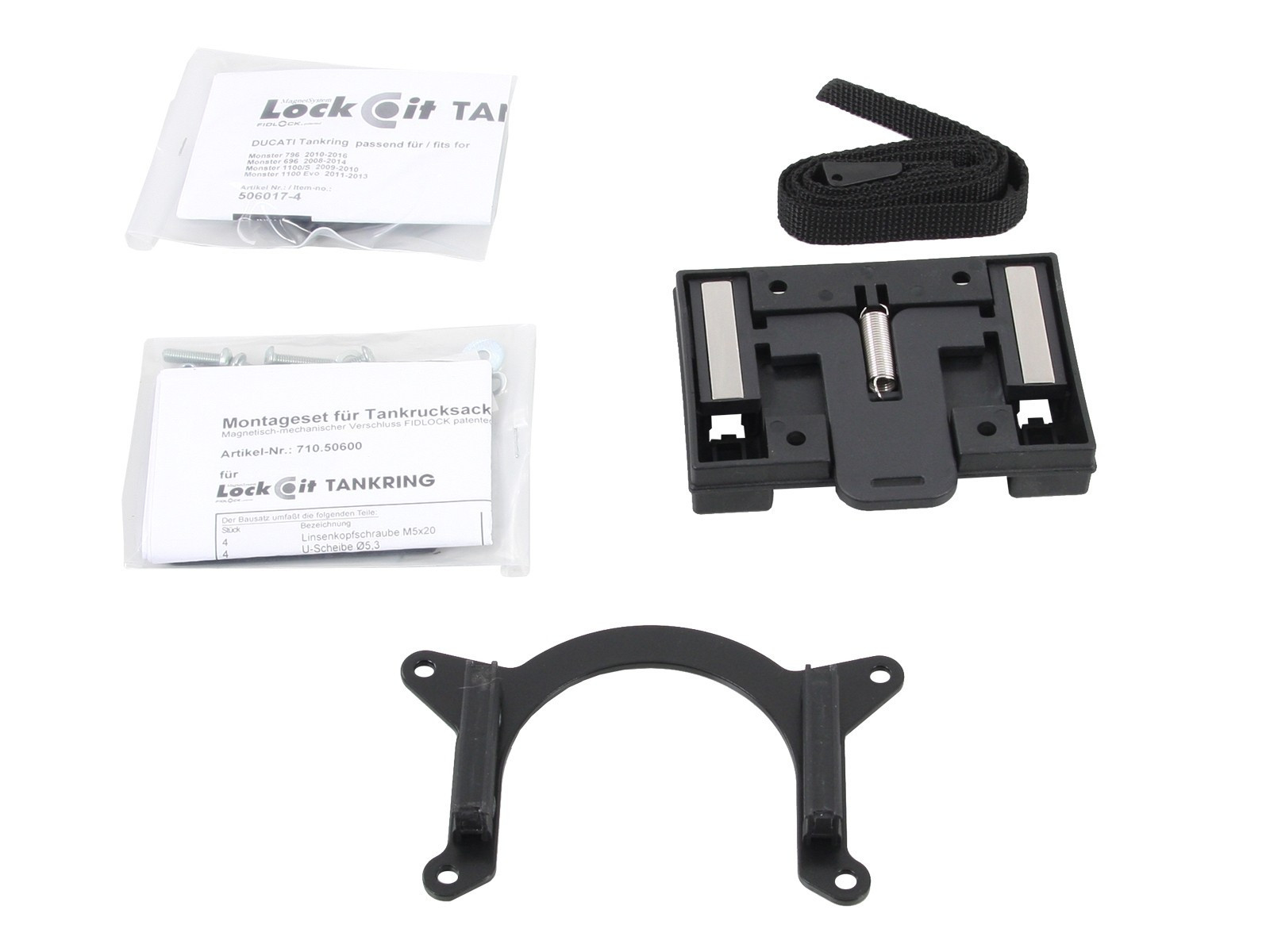 Súčasťou dodávky je krúžok nádrže Lock-it a protikus, ktorý je možné jednotlivo priskrutkovať k vaku nádrže, v závislosti od tvaru nádrže a uhla riadidiel.