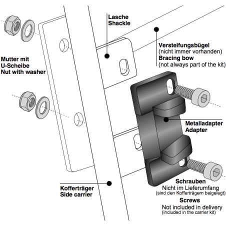 Upozornenie: Pre bočné kufre Alu Standard a Alu Exclusiv sú potrebné ďalšie dištančné dosky. Vyžaduje sa nasledujúca súprava: 710081