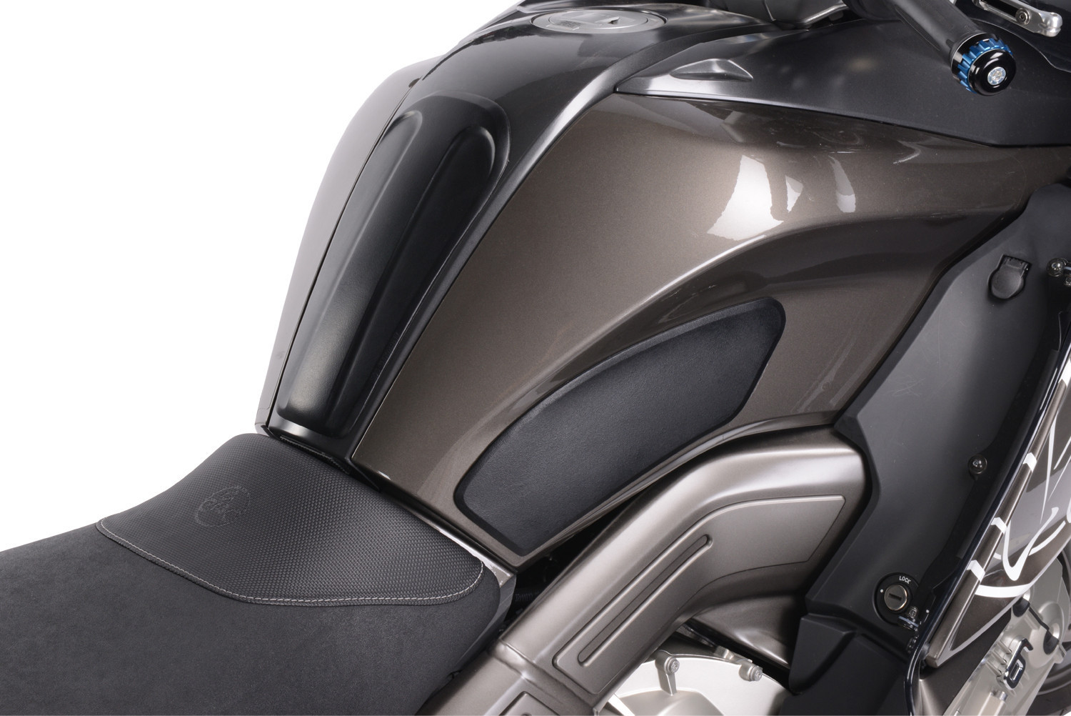 Trojdielna súprava podložiek nádrže je presne prispôsobená dizajnu stroja. Podložky účinne chránia všetky kontaktné body na nádrži pred poškriabaním, odieraním alebo odieraním. Zároveň zlepšujú uzavretie kolien a vďaka zvýšenej priľnavosti poskytujú citeľne lepší kontakt s motocyklom pri jazde. To výrazne zvyšuje zážitok z jazdy a potešenie z jazdy. Materiál pozostáva z kvalitného, protišmykového čierneho plastu, ktorý tlmí nárazy a má jemne zrnitú textúru. Podložky sú samolepiace a ľahko sa pripevňujú.