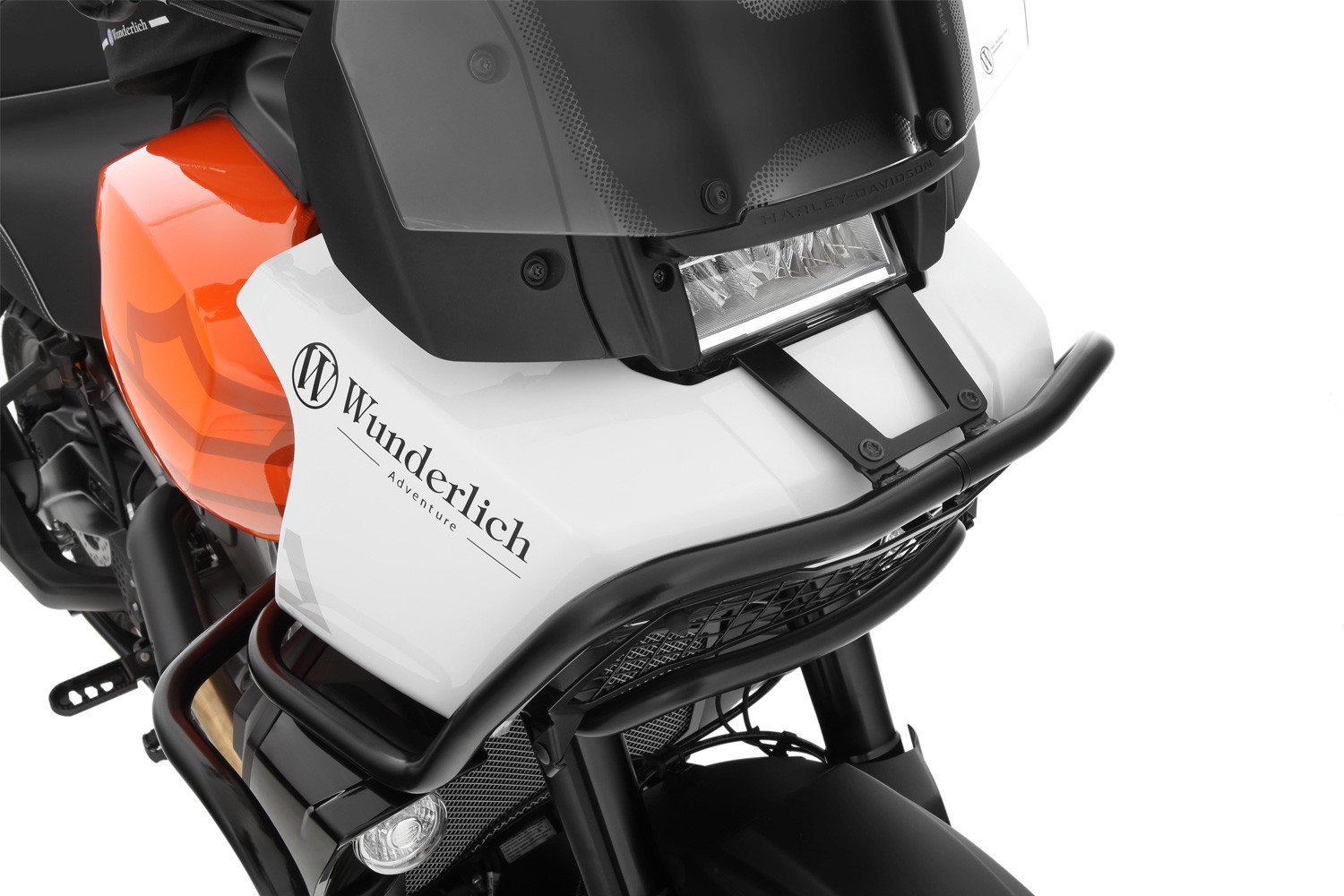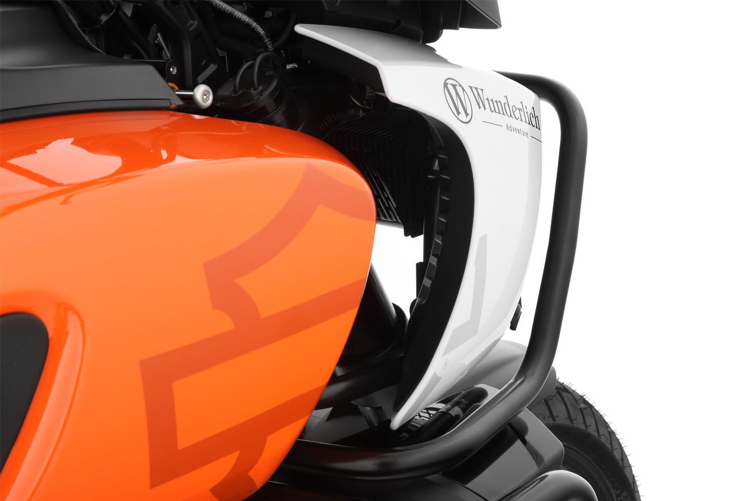V kombinácii s našou ochrannou lištou motora, ochranou predných svetlometov a chladiča a ďalšími komponentmi ochrany Adventure tvorí ochranná lišta kapotáže dobre premyslenú všestrannú koncepciu na zvýšenie pasívnej bezpečnosti vášho bicykla. Poznámka: Nepasuje do kombinácie s originálnou ochrannou lištou. Fakty Funkcia Sofistikovaný koncept ochrany kapotáže, predstavca a oblasti okolo svetlometu Spoľahlivo chráni a tým znižuje riziko drahého poškodenia Ochranná lišta, ktorá je vizuálne integrovaná do muškárskej línie, podčiarkuje výrazný vzhľad bicykla Perfektný strih podľa modelu Rovnomerné rozloženie síl pôsobiacich v upevňovacích bodoch, bodová sila a špičky hybnosti sú znížené Podrobné, ľahko pochopiteľné montážne pokyny V spojení s ochrannou lištou motora a ďalšími ochrannými komponentmi Adventure tvorí ochranná lišta kapotáže dobre premyslenú všestrannú koncepciu pasívnej bezpečnosti. Technické dáta Materiál: Presná oceľová rúrka, precízne tvarovaná na CNC strojoch na ohýbanie rúrok, starostlivo zváraná s čistým vzorom švov, lakovaná čiernou práškovou farbou. Rozmery Priemer trubky 25 mm Wunderlich výhody Produkt Wunderlich. Malá séria. Vyrobené ručne. Wunderlich Design. Funkčné a integrované. Vyrobené v Nemecku Pasuje pre: ModelĎalšie informácie Pan America 1250 nie s pôvodným ochranným rámom  Pan America 1250 Special nie s pôvodným ochranným rámom