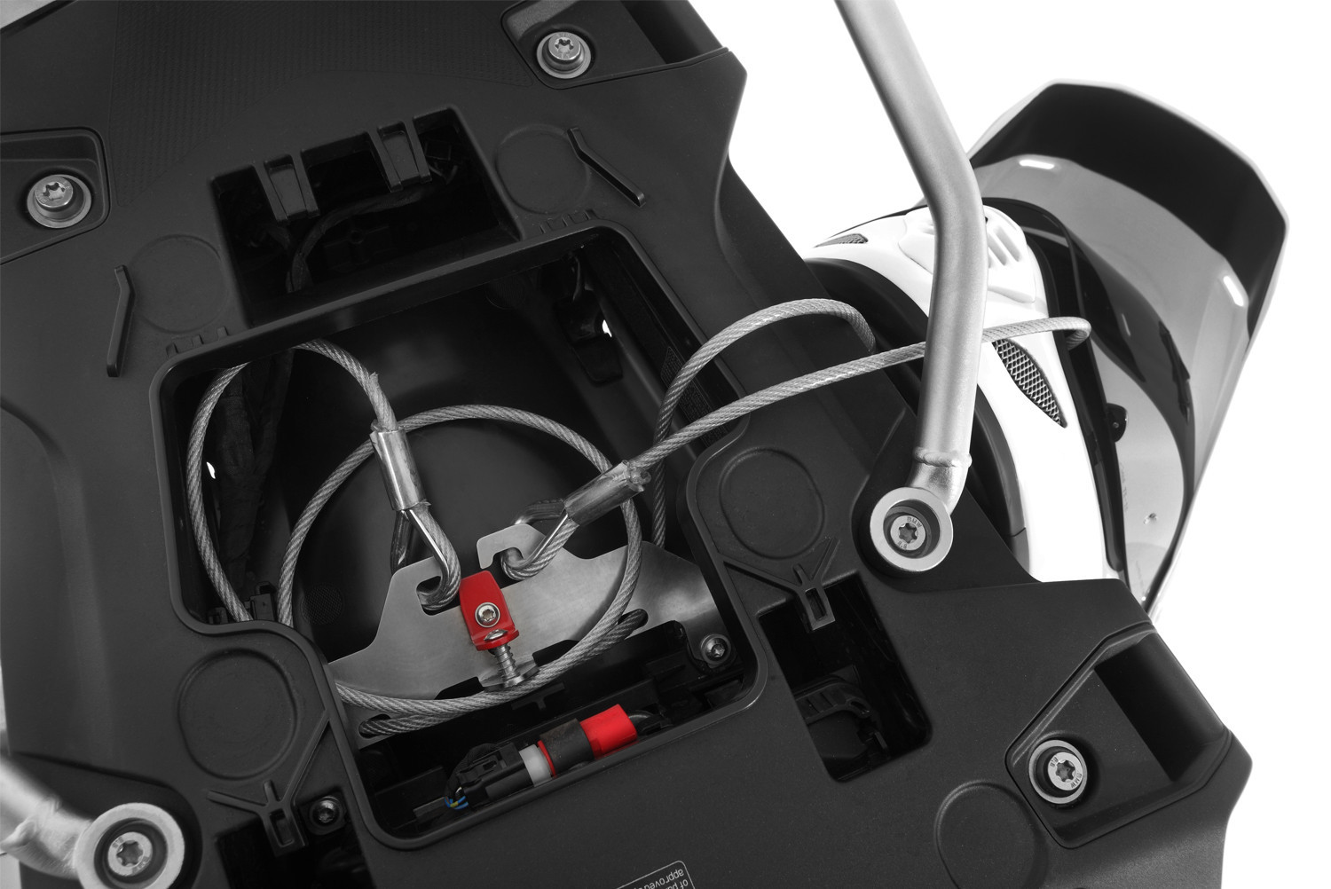 Pravdepodobne najbezpečnejší a ľahko použiteľný zámok na prilbu. Robustná hliníková základňa nášho zariadenia proti krádeži prilby je bezpečne pripevnená pod sedadlom. Dĺžka lana je taká, že je možné zaistiť až dve prilby. Drôtené lano má priemer 4 mm. Pevne riešené náprstky koncov lana sú zaháknuté do závesného zariadenia nosnej základne a bezpečne pripevnené odpruženou skrutkou. Dodatočne je zaistený namontovaným a zablokovaným sedadlom. To znemožňuje otváranie slučiek bez zdvihnutia sedadla. Tento bezpečnostný prvok nájdete len u nás. Ďalšou výhodou je, že nie je potrebný žiadny dodatočný zámok a nemusíte so sebou nosiť ďalší kľúč. priehľadný, Veľkoryso dimenzovaný poťah bezpečnostného lana zo silikónu chráni prilby a motocykle pred odieraním a poškodením laku. Keď sa lano nepoužíva, je uložené pod sedadlom, aby sa ušetrilo miesto - vždy pripravené po ruke. Naše zariadenie proti krádeži »HELM-LOCK« sa ľahko používa a je mimoriadne užitočné, takže bez neho už nebudete chcieť byť. Fakty: Jednoduché pripevnenie až dvoch prilieb proti krádeži Robustne skonštruovaný systém vyrobený z nehrdzavejúcej ocele Prístup k odomknutiu je zabezpečený zámkom sedadla Nie je potrebný žiadny dodatočný zámok atď Hliníkové závesné zariadenie je trvalo pripevnené pod sedadlom Bezpečnostné lano je možné odložiť, aby sa ušetrilo miesto, keď sa nepoužíva Oceľové lano s hrúbkou 4 mm Vysokopevnostné stlačenie koncov lana do slučiek Slučky vystužené oceľovými náprstkami na ochranu lana Hrubostenné silikónové opláštenie lana, aby sa zabránilo poškodeniu laku odieraním Kompletné s inštalačnou sadou Technické špecifikácie: Materiál: Montážna základňa vyrobená z hliníka a nehrdzavejúcej ocele, vyrobená presne a perfektne sedí, pevné drôtené lano, potiahnuté silikónom s priemerom 5 mm osobitosti Nádherný prémiový produkt. Malá séria. Vyrobené ručne. Rozmarný dizajn. Integrovaný a funkčný. Vyrobené v Európe 5-ročná záruka Rozmarná kategória produktov ochranu batožinu