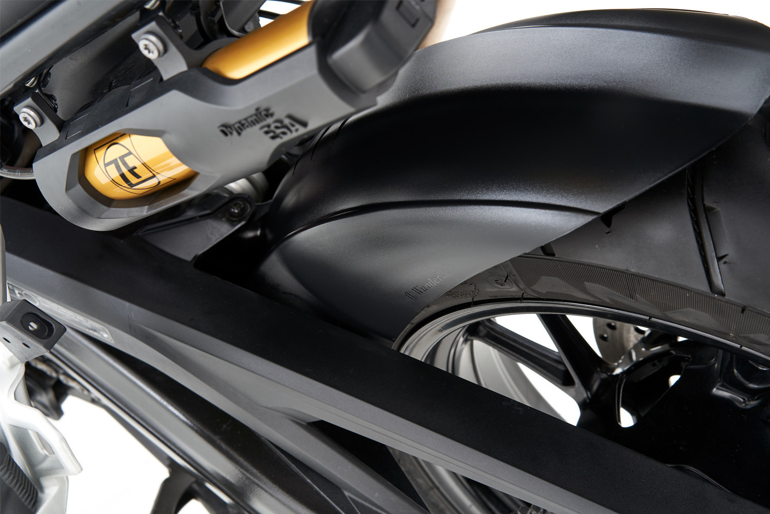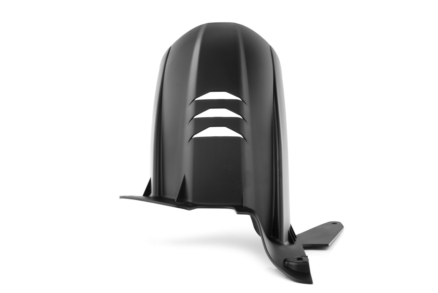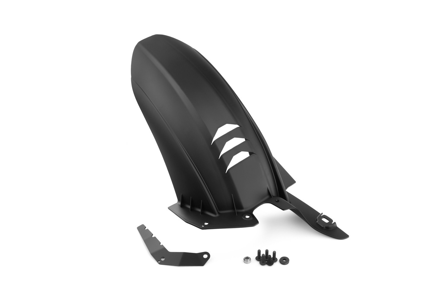 Zároveň ponúka spoľahlivú ochranu pre technické komponenty: pružinová vzpera, výfukový systém, zberač, mechanizmus výfukovej klapky a spodná konštrukcia zadného rámu sú chránené proti odletujúcim kamienkom, nečistotám z vozovky a proti vlhkosti pri jazde v daždi. . Zadný blatník je po bokoch vystužený, aby sa tlmili vibrácie. Tri špeciálne tvarované otvory na obvode krytu zaisťujú efektívnu minimalizáciu hluku dvoma spôsobmi: pozitívne je ovplyvnené rezonančné správanie krytu zadného kolesa a z hľadiska akustiky prúdenia je znížený aerodynamicky generovaný hluk v úzkej medzere medzi kolesom a krytom. . Funkcia: Jednoduché opatrenie na ochranu ľudí a techniky Chráni nohy a chodidlá vodiča a spolujazdca pre väčšie pohodlie a bezpečnosť Chráni tlmič, výfukový systém, mechanizmus zberných výfukových ventilov a spodnú konštrukciu zadného rámu Bezpečné pripevnenie Jednoduchá montáž Technické špecifikácie Materiál: Kvalitný ABS plast, presný, perfektne padnúci tvar, prefarbený na čierno osobitosti Rozmarný. Malá séria. Vyrobené ručne. Integrovaný funkčný dizajn Nie je potrebné žiadne ABE Vyrobené v Nemecku Pasuje pre: