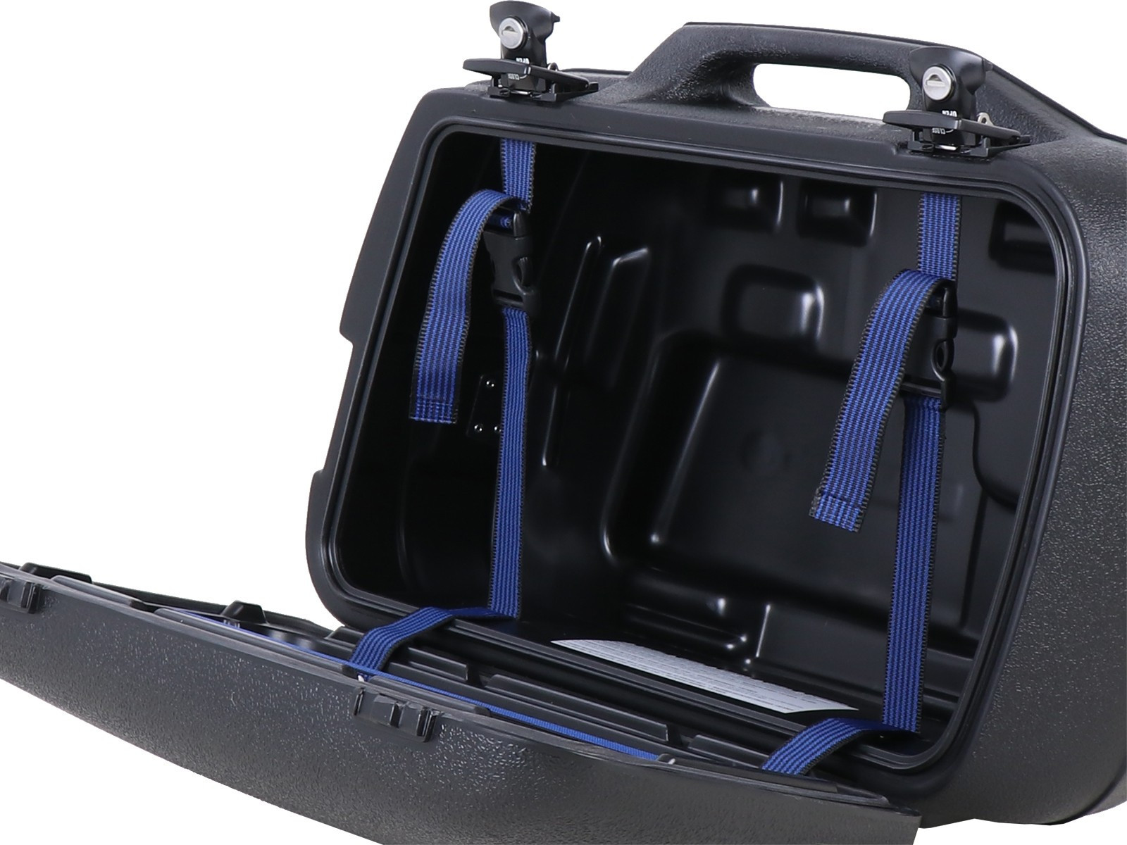 vodotesné cez špeciálne tesnenie Vysoko nárazové fúkané plastové tácky Púzdro s robustnými kovovými zámkami vrátane kľúčov a vložiek zámku ergonomická rukoväť Aerodynamický tvar, klasický dizajn Vnútorné vrecká dostupné ako príslušenstvo 40 ltr. Puzdro sa hodí pre väčšinu prilieb Rozsah dodávky: vľavo + vpravo + 2x zámkový adaptér na pripevnenie kufra k bočnému nosiču kufra Hepco & Becker Hodí sa pre väčšinu stojanov na bočné kufre Hepco & Becker (pamätajte na informácie o konkrétnom modeli na príslušnom stojane.) Odporúčané zaťaženie: 10 kg na puzdro (nezabudnite na informácie týkajúce sa konkrétneho modelu pre daný nosič, ako aj informácie týkajúce sa výrobcu motocykla.)