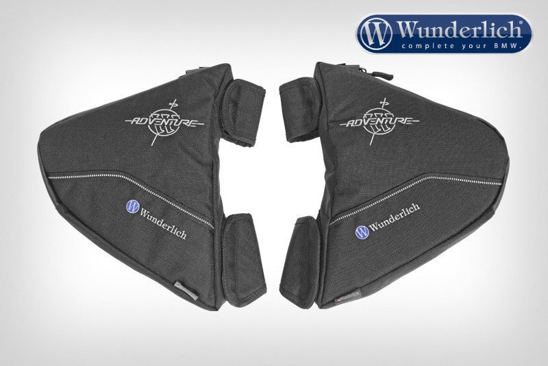 Dodatočný batožinový priestor na ochranných tyčiach nádrže pre veci, ktoré sa nezmestia do tašky na nádrž, ale stále ich chcete mať na dosah. Neotrasiteľný nástavec Úplná sloboda pohybu Optimálne rozloženie hmotnosti a posunutie ťažiska Jednoducho zasuňte na ochrannú konzolu nádrže a pripevnite ju bezpečne k tyči pomocou úplne zakrytého uzáveru na suchý zips. Podložené vonkajšie a podlahové povrchy chránia obsah pred vibráciami, chránia lištu pred vzpieraním a trepaním. Stabilná forma, aj keď je prázdna Citeľné vnútorné priehradky Modrá vnútorná výstelka umožňuje jasnosť a veci už nemôžu zmiznúť v trhlinách. Vodoodpudivá látka CORDURA potiahnutá teflónom Vysoko odolný a neabrazívny  Potiahnutý interiér Grippy zips Vode a prachu odolné zipsové uzávery Vyrobené v Nemecku a Európe Rozmery (D / Š / V) v cm:  20 x 28 x 5 Objem v litroch (približne):  1,5 Kompletná sada (vpravo / vľavo) vč. montážna sada pre originálnu nárazovú tyč nádrže Adventure