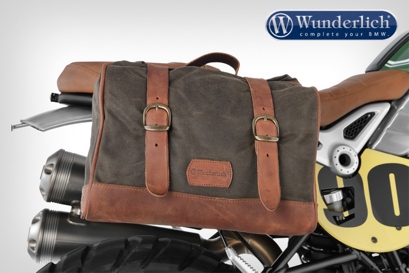 Tieto štýlové, olivovo-čierne bočné tašky na pravú alebo ľavú stranu, vyrobené z voskovanej bavlny, nie sú len praktickým riešením batožiny, ale dodávajú modelu R nineT aj príťažlivý, ležérny vzhľad. Aplikácie z pravej kože zdôrazňujú hodnotu, odolná vnútorná podšívka robí z tašiek robustný tovar. Tašku spoľahlivo a štýlovo zapína zips a dva široké kožené popruhy. Obsah 9,5 litra na vrecko je možné chrániť pred akýmkoľvek počasím pomocou voliteľných nepremokavých vnútorných vakov.