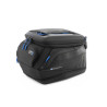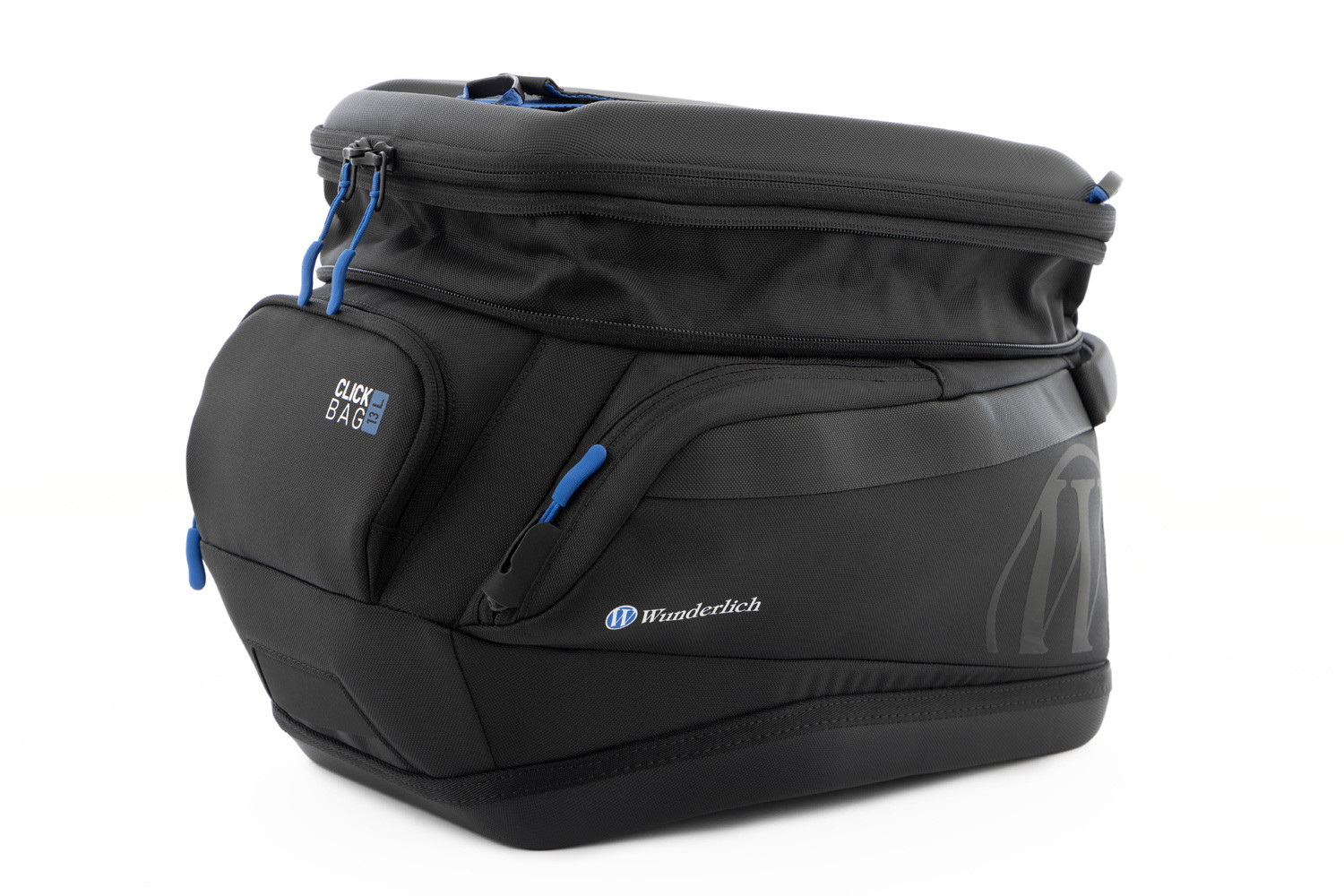 CLICK BAG 13 má 13 litrový úložný objem, ktorý je možné rozšíriť o celých 23% na 16 litrov pomocou obvodového zipsu. Okrem toho má tri vrecká, ktoré sú ľahko dostupné zo sedla a sú integrované na pravej a ľavej strane, ako aj na strane smerujúcej k jazdcovi. Vďaka tomu je CLICK BAG 13 ideálnym všestranným pomocníkom. Hlavná priehradka je ľahko prístupná vďaka veľkorysému otváraniu chlopne. Vybavili sme ju všestrannou sieťovanou priehradkou na vnútornej strane, ktorá sa dá uzavrieť zipsom. Z vonkajšej strany má koncovka nastaviteľný pásik na suchý zips na upevnenie rukavíc alebo iného náčinia. Dá sa použiť ako alternatíva k pohodlnej rukoväti CLICK BAG. Zips hlavnej komory má dva ergonomické zipsy. Vozíky sú vybavené otvormi, cez ktoré možno CLICK BAG bezpečne uzavrieť štandardným zámkom.