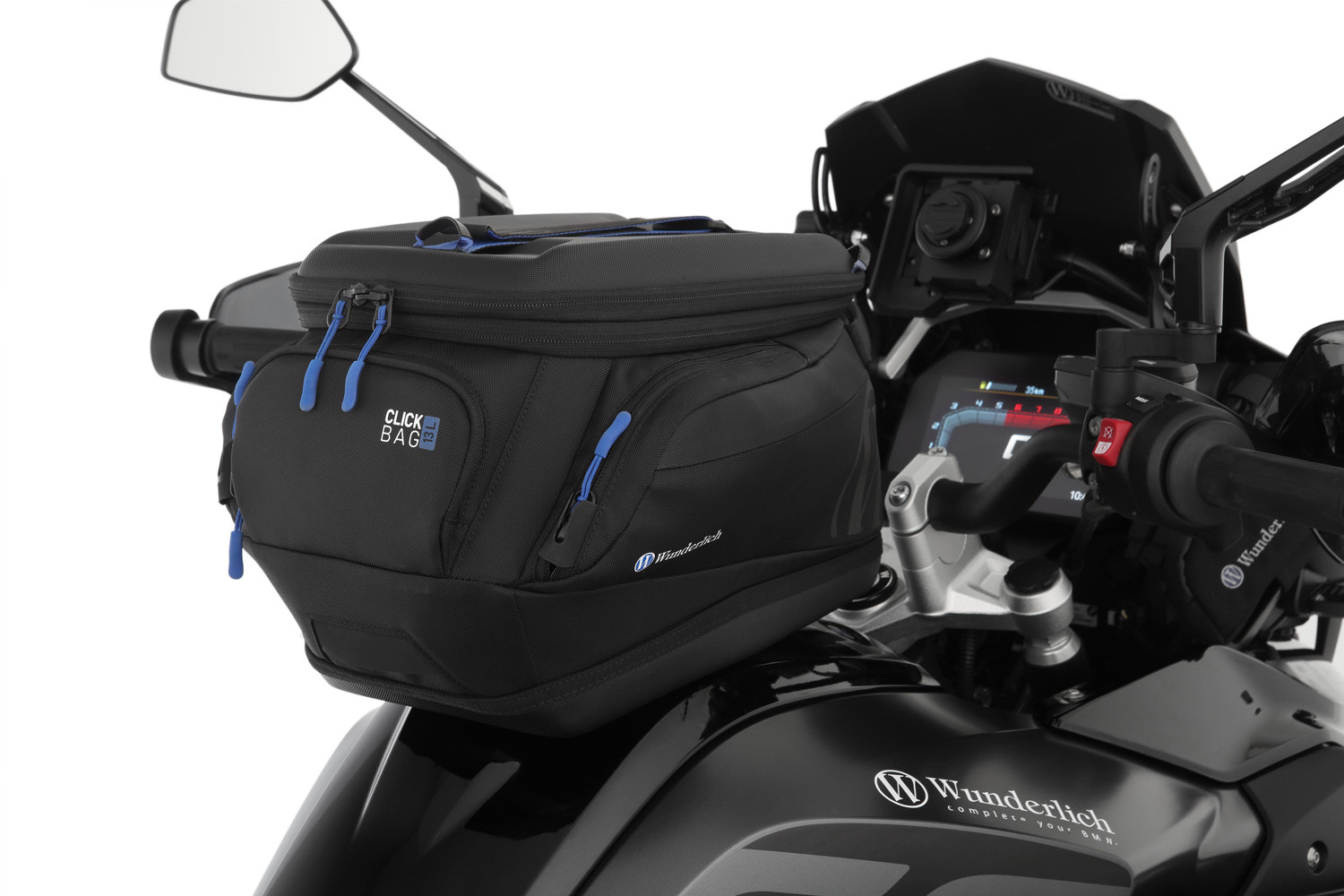 Manipulácia je mimoriadne pohodlná: CLICK BAG sa pri nasadzovaní zasúva zhora do krúžku nádrže, kým sa zámok automaticky nezablokuje. Pomocou popruhu je možné zámok uvoľniť jedným potiahnutím. Vak na nádrž je možné okamžite vybrať a doplniť palivo. Robustný uzamykací mechanizmus sa dá pozdĺžne posúvať dopredu alebo dozadu. Pozíciu tankvaku na nádrži je možné nastaviť v troch polohách v 20 mm rastri podľa individuálnych potrieb a okolností, ktoré vyplývajú z tvaru nádrže alebo uhla riadenia.