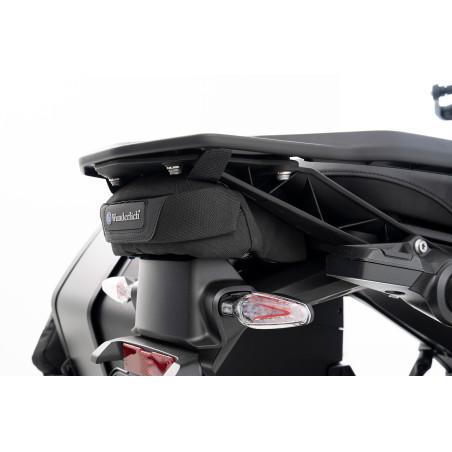 Táto kvalitná taška na batožinu, perfektne prispôsobená, sa pohodlne zmestí do medzery pod nosičom batožiny a optimálne využíva voľný priestor. Taška vyrobená z udržateľného materiálu CORDURA® TrueLock™ má priehradku, ktorú je možné otvárať a zatvárať aj v rukaviciach pomocou ľahko uchopiteľného vodoodpudivého zipsu. Je vhodný najmä pre malé veci, ktoré musia byť rýchlo dostupné. Ľahko sa dá uložiť napríklad lekárnička, náradie atď. Jednoduché pripevnenie pomocou upevňovacieho pútka v hornej časti tašky. Vďaka protišmykovej spodnej časti taška pevne sedí na vozidle. S logom značky Wunderlich.