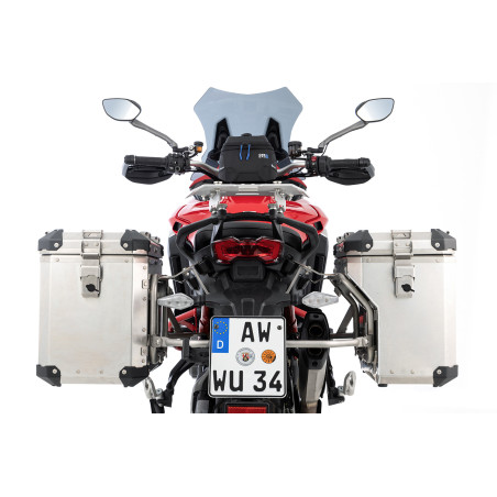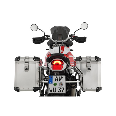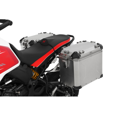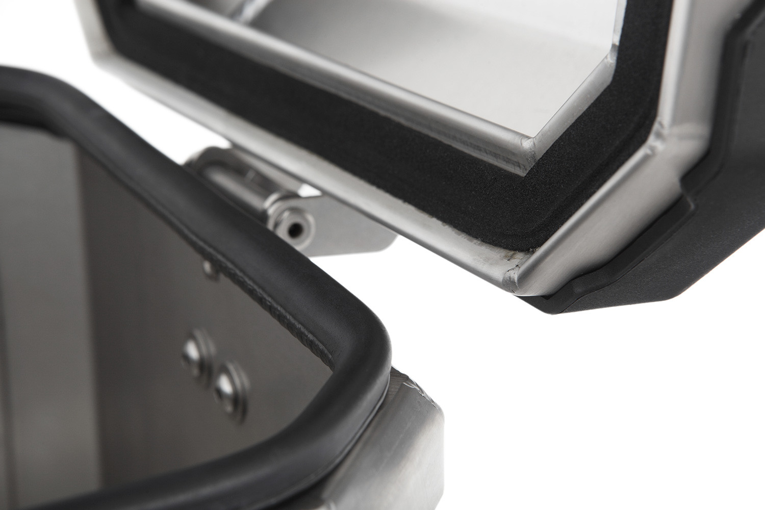 Či už na výlet po diaľnici, na North Cape alebo cez púšť: tieto robustné, ľahké a štýlové hliníkové puzdrá EXTREME vás prevedú hrubým aj slabým! Nasadenie na nosič je jednoduché vďaka rýchloupínaciemu systému. Sú absolútne prachotesné a vodotesné vďaka špeciálnemu systému tesnenia. Dôsledné používanie len vysokokvalitných materiálov zaisťuje dlhú životnosť nášho batožinového systému EXTREME. Prispieva k tomu opracovaný 1,5 mm hliníkový plech so stabilizačnými lištami (hmotnostne optimalizovaný, ale robustný), nerezové kovanie a vymeniteľná celoobvodová ochrana na všetkých rohoch.