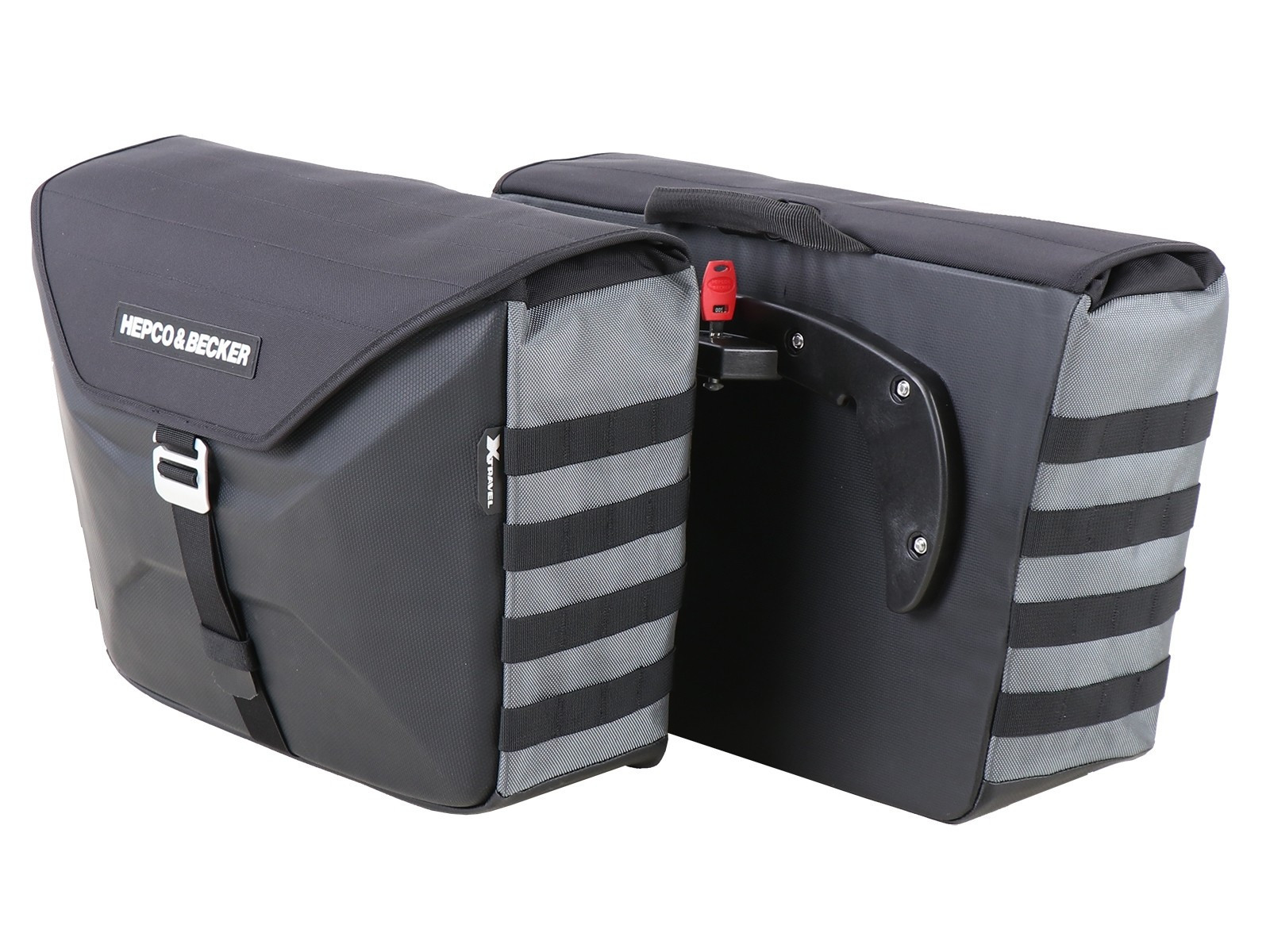 Vzdialenosť od výfuku by mala byť minimálne 5 cm. Dbajte na to, aby prúd výfukových plynov nebol namierený na vak. Nebezpečenstvo tepelného poškodenia! Úzky a diskrétny bočný držiak Hepco & Becker C-Bow je nosičom tašiek Xtravel C-Bow. Jednoducho ho pripnite a bezpečne zafixujte. S objemom balenia 25 litrov je táto taška predurčená na krátke výlety. Vďaka vodoodpudivému vonkajšiemu materiálu a absolútne nepremokavej vnútornej výstelke z polyesteru s uzáverom zvrchu zostáva obsah suchý aj pri jazde v daždi. Zadná stena z oderuvzdornej plachty vytvára stabilitu a uľahčuje čistenie. Centrálny hliníkový hák G-Hook sa ľahko používa a spoľahlivo zatvára. Rukoväť tiež uľahčuje manipuláciu. Bočné systémy MOLLE, inšpirované vojenským textilom, umožňujú pripevnenie voliteľného príslušenstva. Po úplnom naložení je možné tašky vzájomne oprieť pomocou spojovacieho popruhu. vodoodpudivý vonkajší materiál vodotesná vnútorná taška nízka hmotnosť ľahká starostlivosť vhodné pre nosič Hepco & Becker C-Bow. Prípadne. Akékoľvek obmedzenia nájdete v informáciách o produkte konkrétneho modelu od nositeľa. vrátane vložky na kľúč a zámku