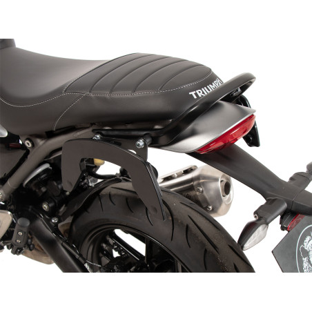 Bočný držiak tašky C -Bow je navrhnutý tak, aby držal rôzne tašky Hepco&Becker . Mäkké tašky pre športové, dynamické motocykle a podsedlové tašky pre choppery a cruisery je možné pripevniť na motorku pomocou držiaka C-Bow. Jeho elegantný, nevtieravý dizajn dokonale zapadá do celkovej línie vozidla. Samozrejme, že drží brašne bezpečne mimo horúceho tlmiča. Vďaka modernej technológii C-Bow sa dajú zodpovedajúce vaky jednoducho a ľahko pripojiť k C-Bow jediným kliknutím a uzamknúť, aby sa zabránilo krádeži. Brašne sú bezpečne pripevnené k motocyklu a zostávajú na svojom mieste aj pri naložení. Na mnohých modeloch zostávajú indikátory vo svojej pôvodnej polohe. Ďalšie informácie nájdete v návode na pestovanie.