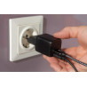 Nástenná nabíjačka 30W má dva USB porty (USB-C a USB-A), ktoré umožňujú nabíjať viacero zariadení súčasne. Vďaka kompaktnému priestorovo úspornému dizajnu je ideálny na použitie doma alebo v kancelárii.
