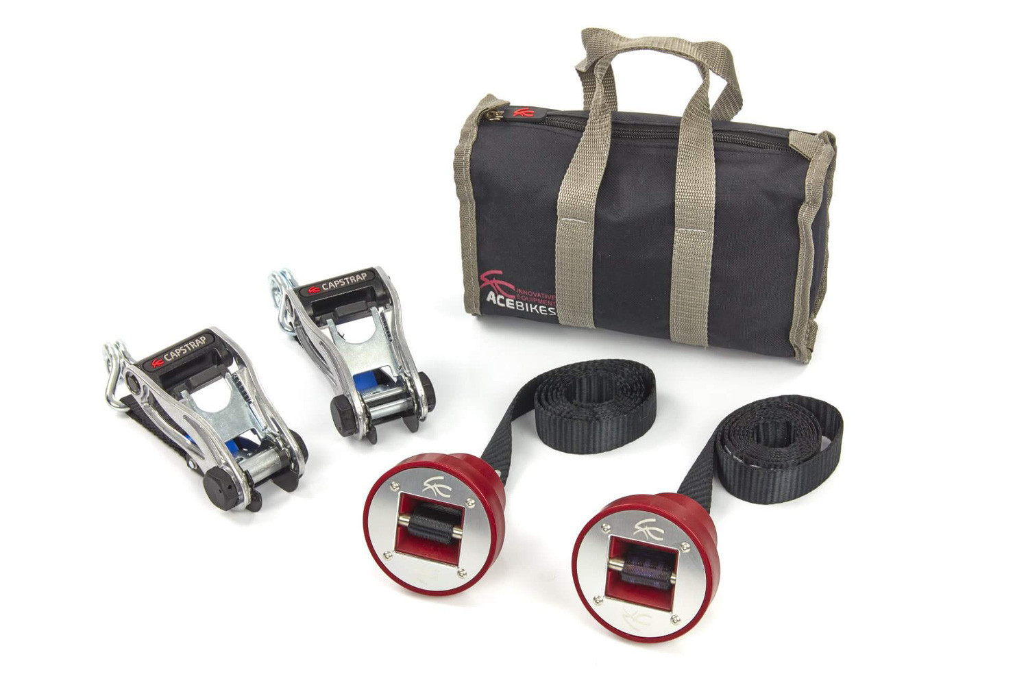 Transportný upevňovací systém pre originálne motocyklové ráfiky BMW s priemerom osi zadného kolesa 5,3 cm. S revolučným upevňovacím systémom Capstrap pre motocykle BMW možno vaše BMW prepravovať bezpečne a spoľahlivo bez namáhania systému odpruženia motocykla. Systém popruhov Captrap pre otvorené osky motocykla je vedený cez osku zadného kolesa.