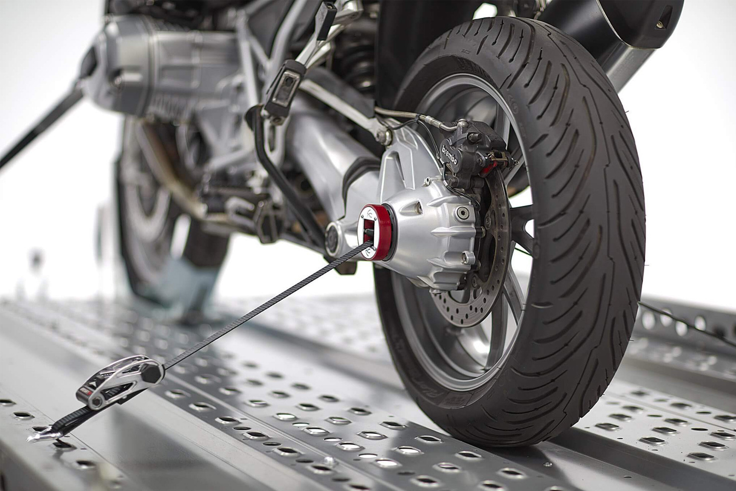 Vhodné pre všetky originálne motocyklové ráfiky BMW s otvorenou (5,3 cm) oskou zadného kolesa. Jednoduché zostavenie a praktické použitie.