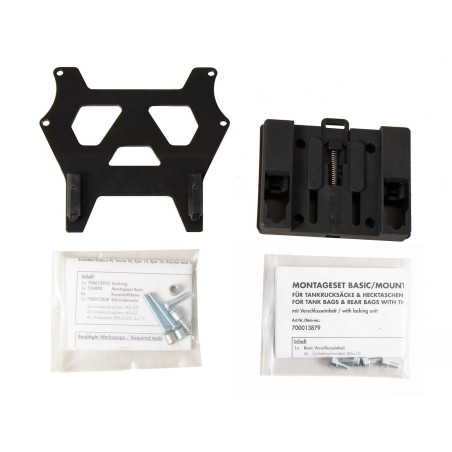 Súčasťou dodávky je krúžok na nádrž BASIC a držiak počítadla, ktorý je možné individuálne priskrutkovať na vak na nádrž v závislosti od tvaru nádrže a uhla riadidiel.