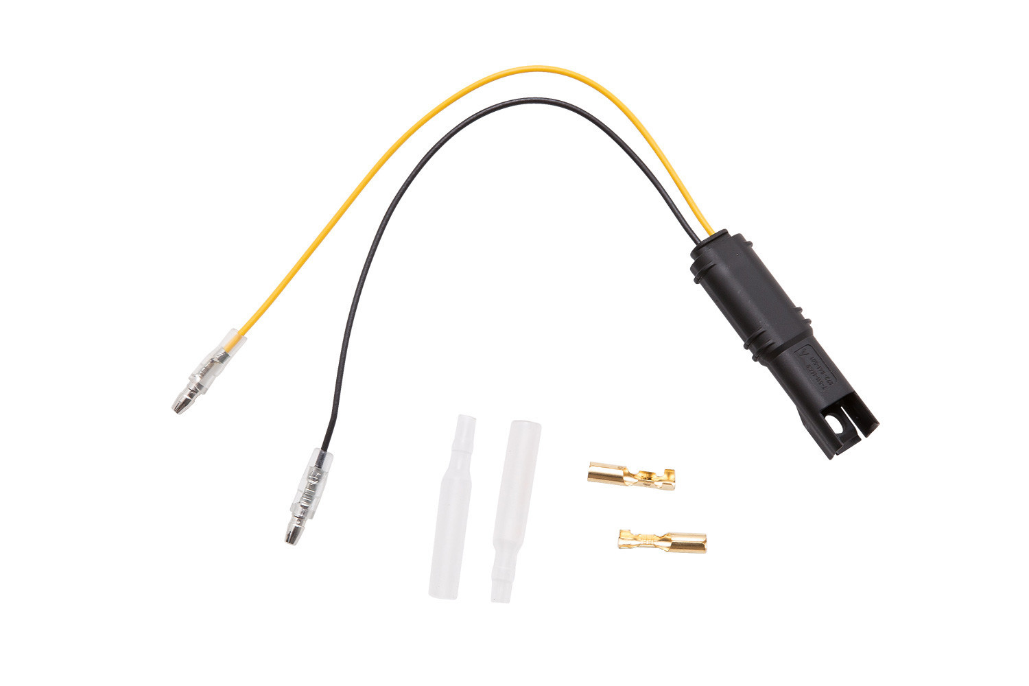 Tento adaptér uľahčuje premenu predných ukazovateľov (napr. ukazovateľov konca riadidiel). Jednoducho sa zasunie do motocykla na miesto pôvodného konektora predných smeroviek a následne sa pomocou praktických okrúhlych konektorov pripojí ku káblom smerovky príslušenstva. Hotovo!