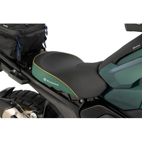 Sedadlo vodiča Wunderlich AKTIVKOMFORT pre BMW R 1300 GS. S technológiou Thermo Pro – štýl Tramuntana v zeleno-zlatom prevedení