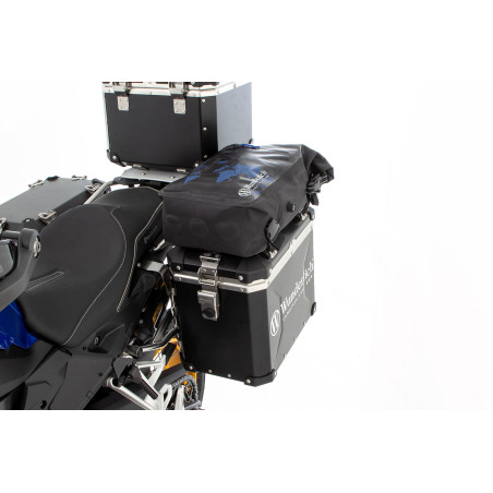 Dá sa nosiť na chrbte ako batoh alebo pomocou štyroch priložených variabilných popruhov pripevniť k kufru, nosiču batožiny alebo sedadlu spolujazdca ako tašku na pripevnenie. Ako pohodlný batoh je vybavený širokými, polstrovanými, nastaviteľnými ramennými popruhmi, vetranou, pohodlnou chrbtovou opierkou a popruhom na prenášanie. Batoh má navyše ďalšiu, ľahko prístupnú priehradku, ktorá je pripevnená vpredu a je chránená vodoodpudivým a prachotesným zipsom. Batoh je vybavený špeciálnym odvzdušňovacím ventilom, ktorý umožňuje únik prebytočného vzduchu zvnútra, aby sa minimalizoval objem batohu. Dá sa otvárať a zatvárať otočením, aby sa po odvetraní obnovila vodotesnosť. Ďalšie praktické vlastnosti: taška na notebook, ktorú možno pomocou pásika na suchý zips bezpečne pripevniť k hlavnej komore a možnosť pripevniť fľašu s vodou na ľavú stranu batohu. Decentný dekor s mapou sveta a logom značky Wunderlich. Ramenné popruhy sú vybavené reflexnými prvkami pre lepšiu viditeľnosť. Poznámka:Spony Quicksnap #25181-302, ktoré sú u nás dostupné samostatne, sú vhodné na veľmi jednoduché a rýchle pripevnenie k puzdru. Fakty funkciu Kvalitný, do detailu premyslený batoh, ktorý funguje aj ako vrecko na pripevnenie Vodotesný a prachotesný hlavný priestor, veľkorysý otvor s rolovacím uzáverom podľa IP66 - s ventilačným ventilom na minimalizáciu objemu balenia Dodatočná, ľahko prístupná predná priehradka s vodoodpudivým a prachotesným zipsom popruh na zápästie Vrátane tašky na notebook, ktorú je možné bezpečne upevniť v hlavnom priestore pomocou popruhu na suchý zips Vybavené jemným dekorom a logom značky Wunderlich Pohodlný ruksak Najvyšší komfort nosenia vďaka širokým, polstrovaným, nastaviteľným ramenným popruhom a ventilovanej chrbtovej výstelke, možnosť bočného pripevnenia fľaše na pitie Popruhy sú opatrené odrazkami Perfektná taška na pripevnenie Ramenné popruhy zmiznú v plochej štrbine na zadnej strane batohu, aby sa ušetrilo miesto a zabránilo sa prehýbaniu Variabilné popruhy na pripevnenie k sedadlu spolujazdca alebo nosiču batožiny Technické špecifikácie Materiál/látka: Kombinácia extrémne robustnej, dvojito potiahnutej polyuretánovej tkaniny, ktorá je kombinovaná s vystuženou polyesterovou tkaninou 600D na bočných bokoch Rozmery Výška 48 cm Šírka 28 cm Hĺbka 15 cm Objem: 20 litrov Rozmery tašky na notebook Dĺžka 40 cm Šírka 30 cm Vaše výhody Wunderlich Exkluzívne od Wunderlich Testované spoločnosťou Wunderlich
