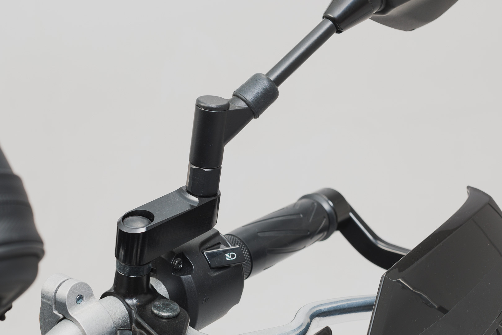 Rozšíření zrcadla Univerzální nástavec zrcadla - 40 mm Pro lepší výhled dozadu CNC frézované, vyrobené z extrémně pevné hliníkové slitiny Černý eloxovaný Zahrnutý: Sada rozšíření zrcadla Montážní materiál Montážní návod Rysy: Pro modely se zrcátkem na řídítkách