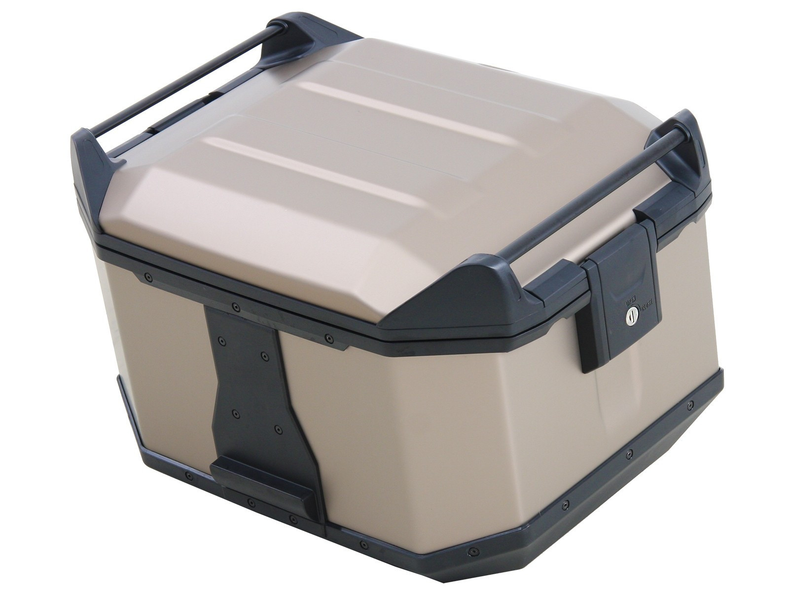 Vysoko kvalitný hliníkový horný kufrík na pripevnenie k nosičom kufra Hepco & Becker Alurack Easyrack alebo rúrkovým nosičom kufra. vonkajšie rozmery: 33x50x39 vnútorné rozmery: 30x42x32