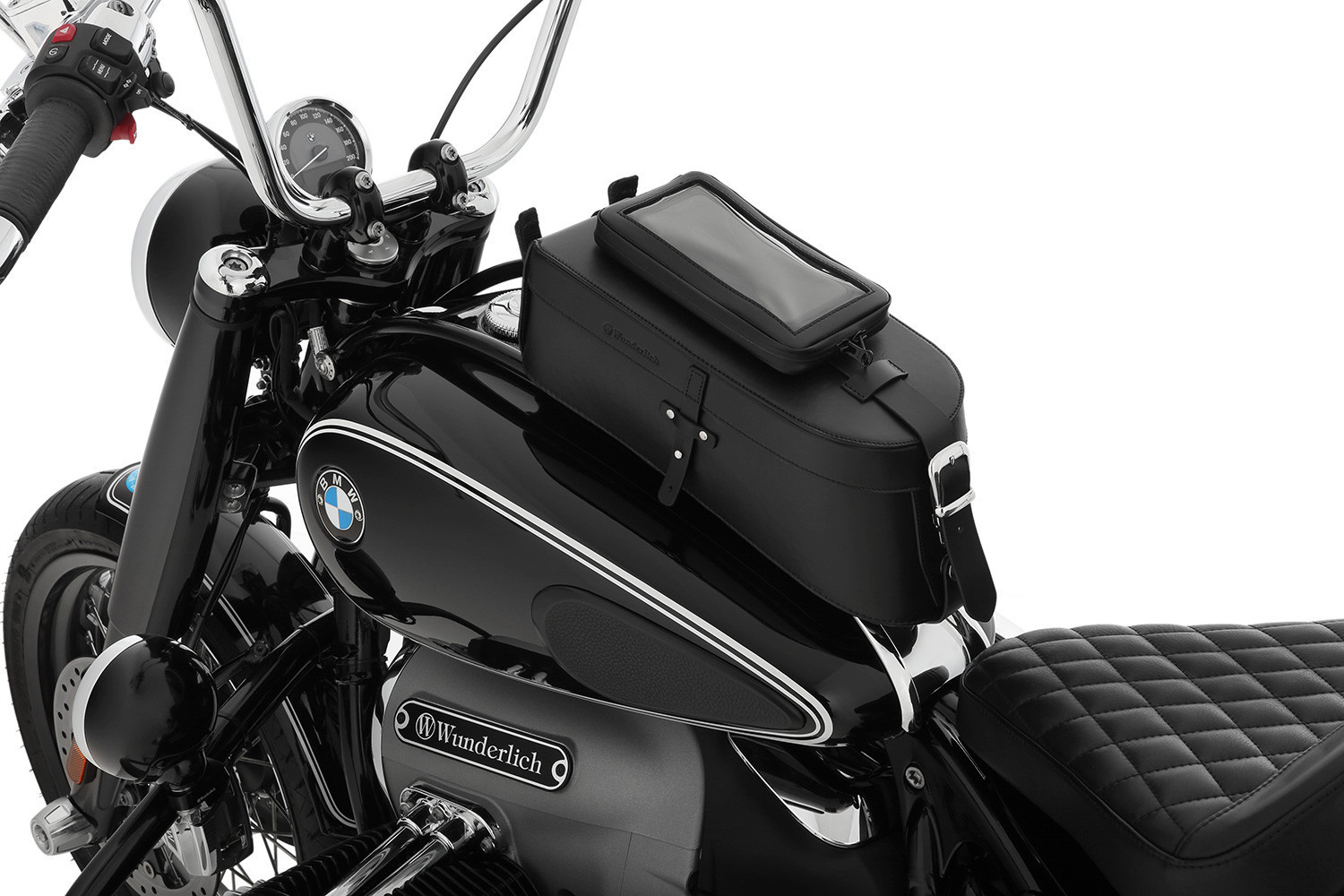 Veľká hlavná taška, ktorá funguje ako tankvak, obsahuje veľkoryso dimenzované, polstrované vrecko na smartfón, ktoré je vybavené priehľadnou fóliou pre ľahké čítanie displeja. Má zips a voliteľne sa dá pripevniť na tankvak.